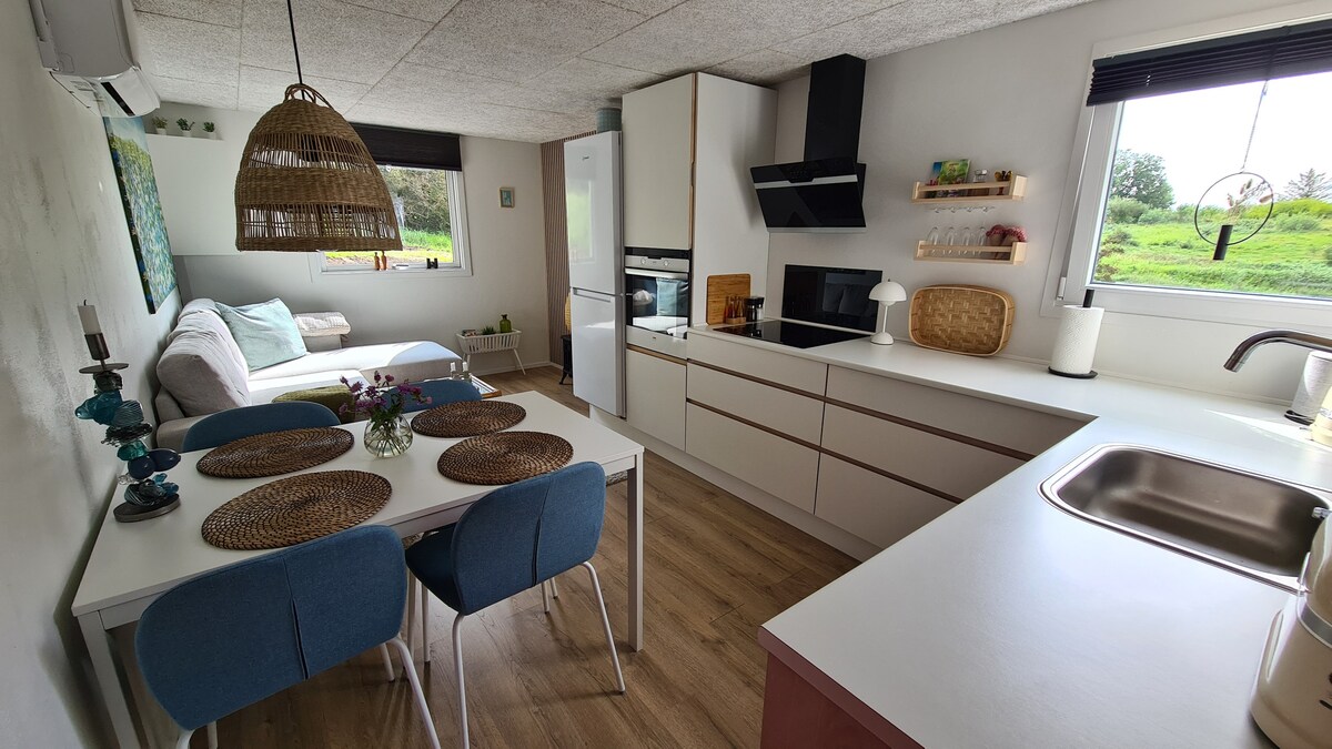 Lovely cottage where there is peace and quiet, with a lot of nature in the backyard, and it's all just a short walk from the North Sea's roaring waves and the forest's quiet tranquility. The cottage is close to Thorupstrand, which is an old, idyllic fishing village where Fiskehuset offers delicious fish dishes. If you like hiking, there are good routes in Fosdalen, Bulbjerg and Svinkløv. Holiday center Slettestrand (swimming pool, playground, mini golf, etc.) There is a wood-burning stove and heat pump for the cold days. Welcome!