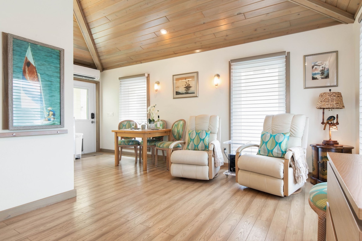 ( Early check ins on request only)Watch the sunrise each morning from this bungalow with private beach access. Enjoy the beach, all the delicious restaurants, and gift shops all within walking distance. All types of wildlife are here at the beach so bring a camera and feed the birds. After spending the day enjoying the outdoors, use the hot water outdoor shower! Don't forget your surfrods and sunscreen!