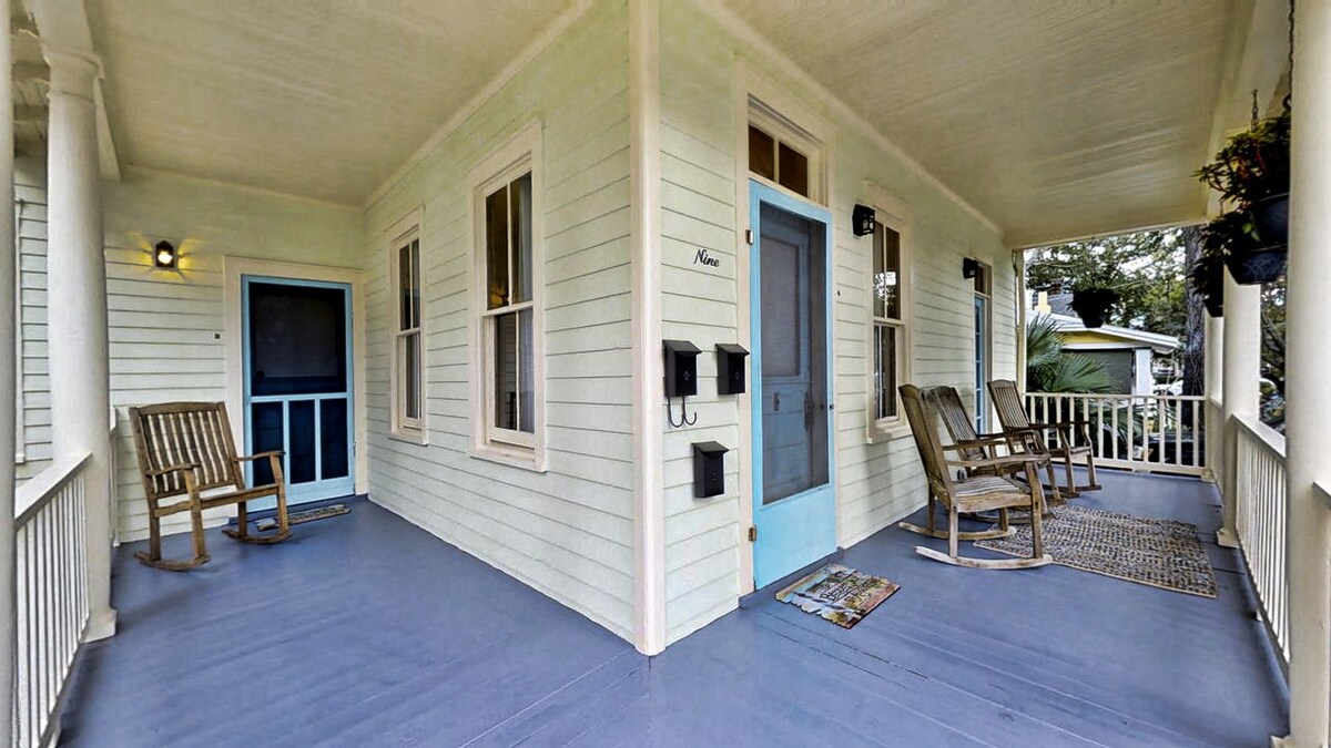 Charming old world apartment in the historic district (AND a short 3-4 miles from multiple beaches) with a completely updated bathroom and kitchen. The kitchen has all new appliances, cupboards and quartz countertop. My favorite part of this apartment is the porch where you can relax, enjoy your morning and evening beverages, watch horse drawn carriages and mingle with our neighbors...