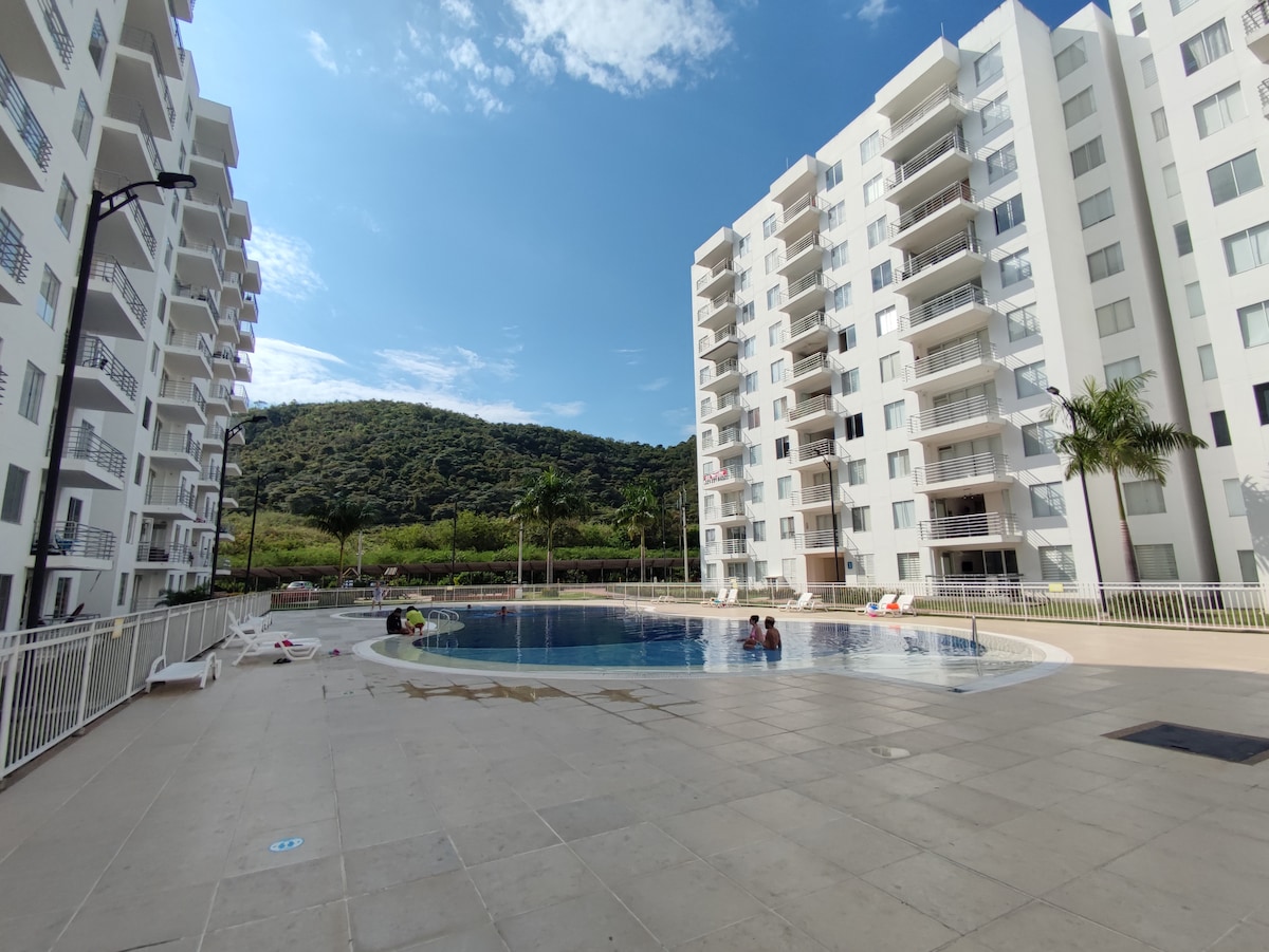 “¿Buscas un fin de semana cálido y relajante? Este moderno apartamento en Girardot con piscina, muy fresco con vista a la montaña y zona BBQ, es perfecto para desconectarte con tu pareja, familia o amigos. A 5 minutos del centro, pero con toda la tranquilidad de una zona residencial.”