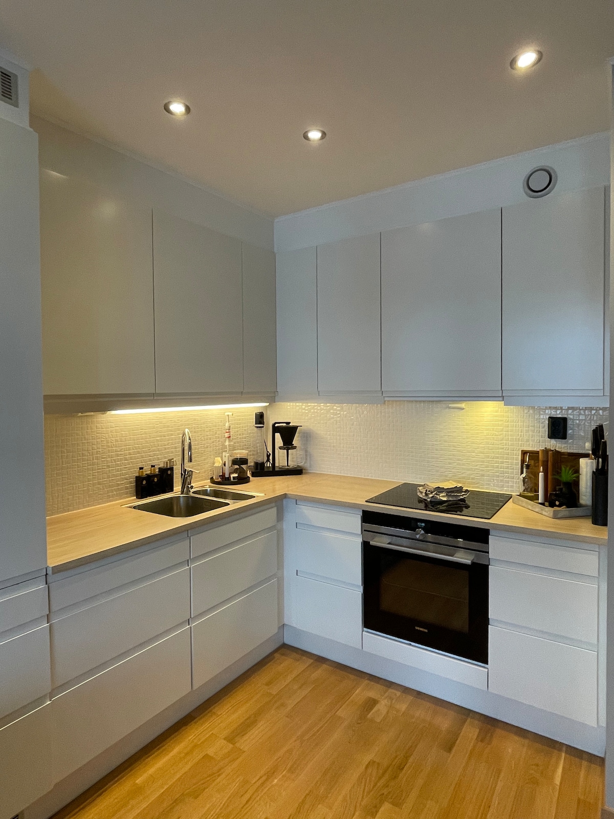 Modern apartment in a quiet neighborhood. Nice kitchen, large living room and inviting bathroom. Large balcony with afternoon and evening sun. Beautiful Nidelven flows right past with a nice hiking trail along the shore. The apartment is very centrally located with walking distance to locations such as Trondheim Spektrum, NTNU (Kalvskinnet, Øya and Gløshaugen), St Olav's Hospital, Nidarosdomen, Lerkendal and the city center.