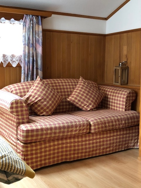 Studio cosy, lumineux et entièrement équipé, à seulement 10min à pied du centre de Gstaad, avec une superbe vue sur les montagnes. L'endroit parfait pour une pause à deux ou en solo. Profitez du balcon ensoleillé pour admirer le paysage alpin. La salle de bain privative, juste sur le palier, est en bois et pleine de charme. Que vous soyez là pour skier, randonner, faire du vélo ou simplement vous détendre, ce petit cocon est idéal pour poser vos valises.