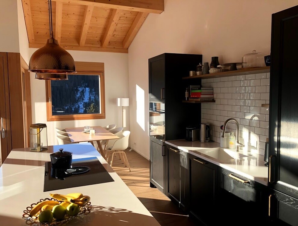 Entspanne dich in diesem einmaligen Rifugio. Im Jahre 2020 total sanierte 2 1/2- Zimmerwohnung, deren Interior Design komplett neu gestaltet wurde. Als Loft mit edelsten Materialien (Valser Granit, Schlossparkett, viel Altholz, freistehende Wanne, Eisenkamin auf zwei Seiten geöffnet, Designarmaturen) ausgebaut. Mit geschütztem Gartensitzplatz und Garten. Sonnige, ruhige Lage. Eigener Hauseingang, Sauna im Nebengebäude. Ski in, ski out oder Skibus in drei Minuten erreichbar.