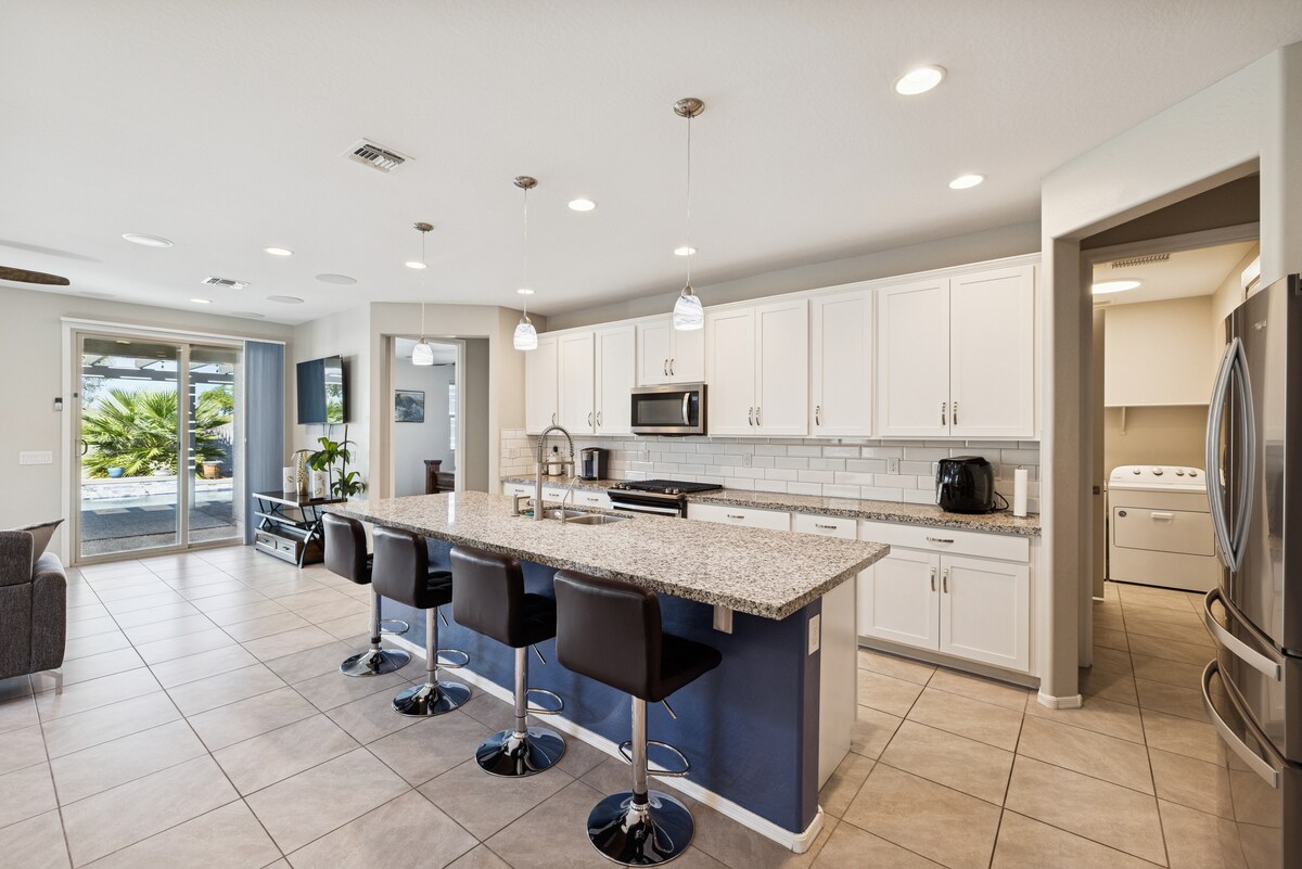 Make yourself at home in this spacious 3-bedroom, 2-bath home in the San Tan Valley. The open concept space is full of light with a large kitchen and living room, perfect for groups of up to 6. Keypad entry provides easy check-in. Southeast of the greater Phoenix/Mesa metropolitan area, there is quick access to hiking, golf, biking... but still close enough for your dining and shopping pleasure. Take in the open spaces of the Arizona landscape while still being close to urban attractions