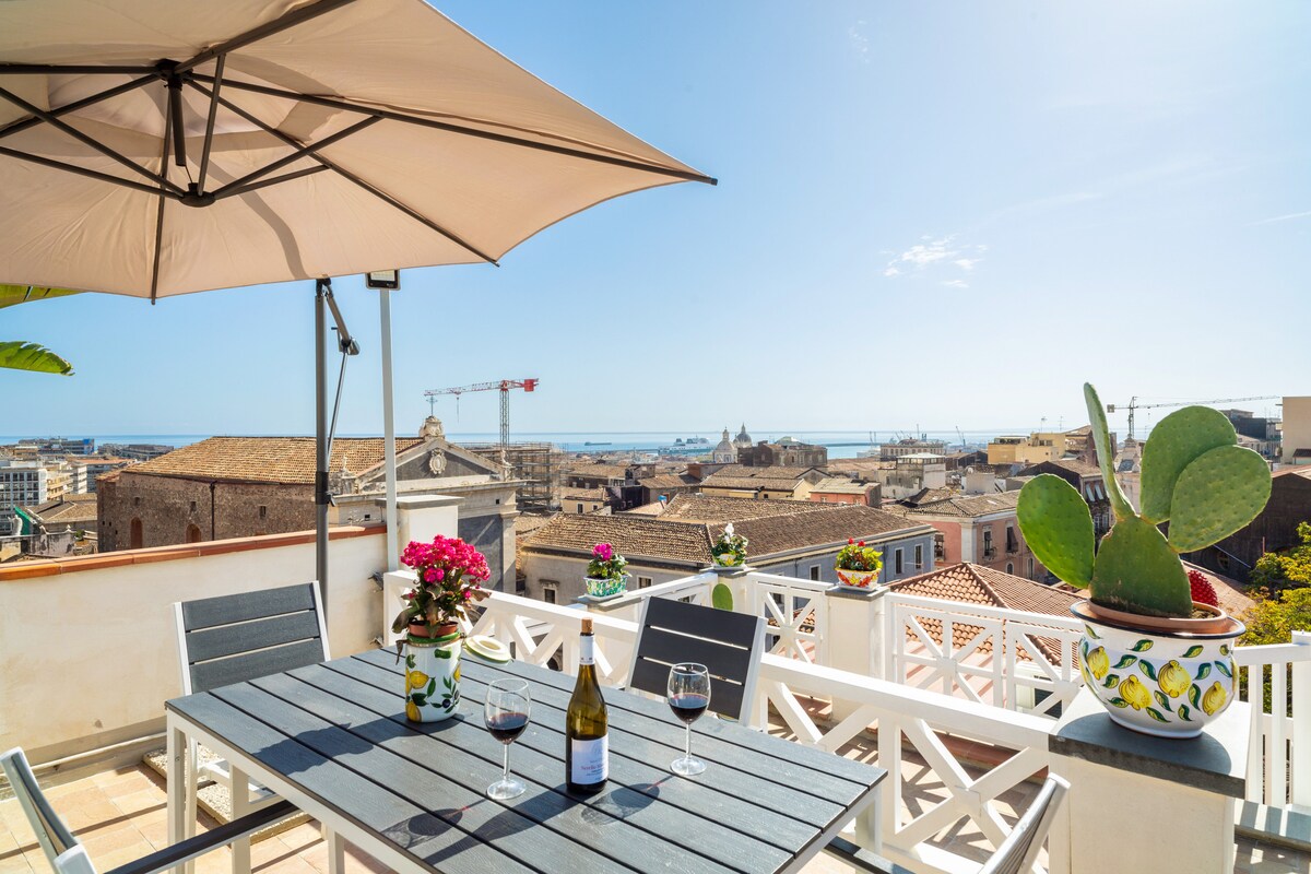 Apartment suite di 180 mq di prestigio in un palazzo del 700 sito nel pieno centro storico di Catania, con balconi con suggestivo affaccio sul Duomo e sullo storico mercato della pescheria. L’appartamento è collocato in posizione strategica a due passi dai principali punti di interesse archeologico culturale e dalle attività gastronomico e commerciali di rilevanza della città e a brevissima distanza dai terminal dei bus, dal porto, dalla stazione ferroviaria e dall’aeroporto.