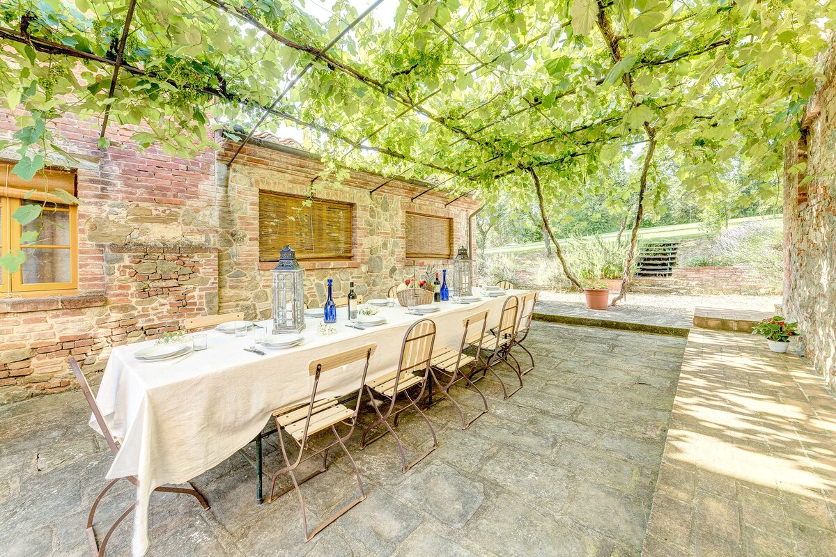 Welcome to our garden residence that is located in the historic centre of Lucignano with breathtaking views over the Val di Chiana. A terrace leads off the dining room and is the perfect place to enjoy aperitivo. The exclusive use private garden has a dining table under a pergola and a loggia with an outdoor lounge. Refresh in summer with an outdoor shower. It is located only a few steps from restaurants and an excellent local supermarket.