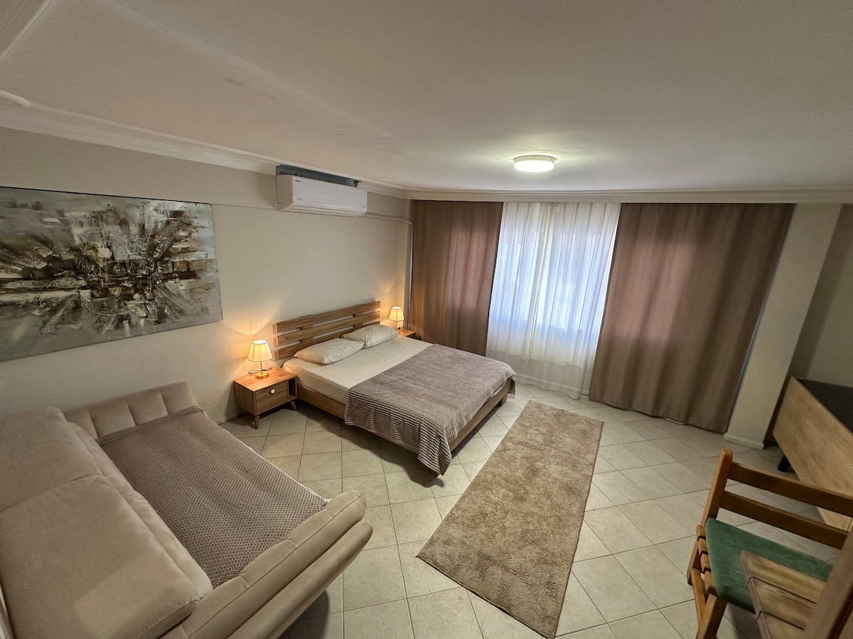 Our boutique and stylish apartment, located in the heart of the city, is a 2-minute walk from Halkapınar station, which is the common point of all rail systems. It offers a spacious living space with modern design, high comfort and combi heating. With its proximity to Izmir's new city center, it provides an elegant and privileged atmosphere for business or leisure stays.