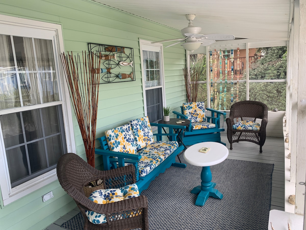 The Smile house shares a porch area with the main house/Inn at Beachside. The 2 king bed/2 bath beach cottage (formerly Christy's dental office) has since been converted back and filled with Folly charm! Amenities include fully equipped kitchen, living areas, as well as a large front porch! Paid parking is available across the street, however there is parking in front on a first come first serve basis. Due to the great location, many guests never use their car once they have arrived.
