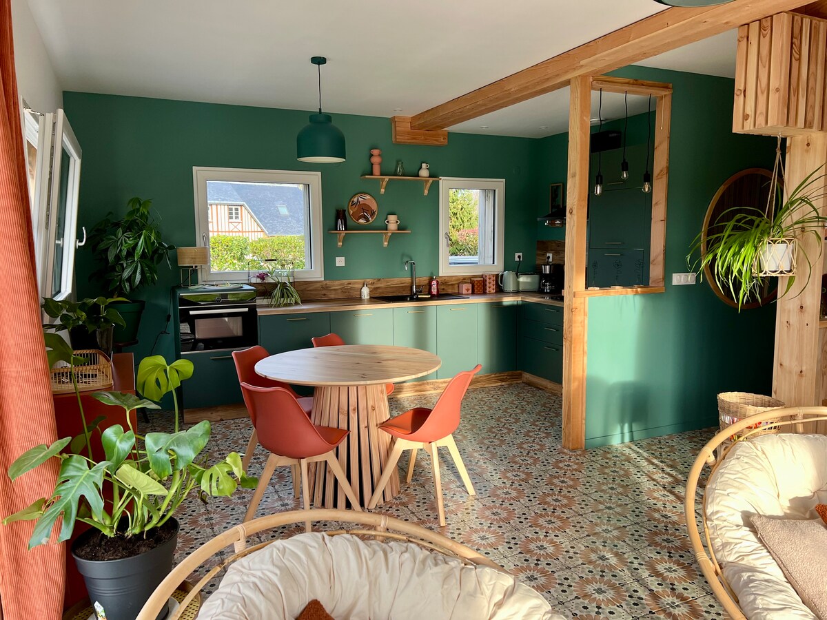 Joli nid douillet attenant à la maison des propriétaires proche d'Etretat et de Fécamp Cuisine équipé frigo, micro-onde, cafetières, toute la vaisselle pour 4 personnes Chambre avec 1 lit de 140 + 1 canapé convertible 19 0x120 pour jeune ado éventuellement + dressing + télévision Salle de bain Tous les commerces au village centre commerciale à 10 mn Le linge de toilette et les draps ne sont pas fournis L'environnement ne conviens pas à des enfants en bas âge