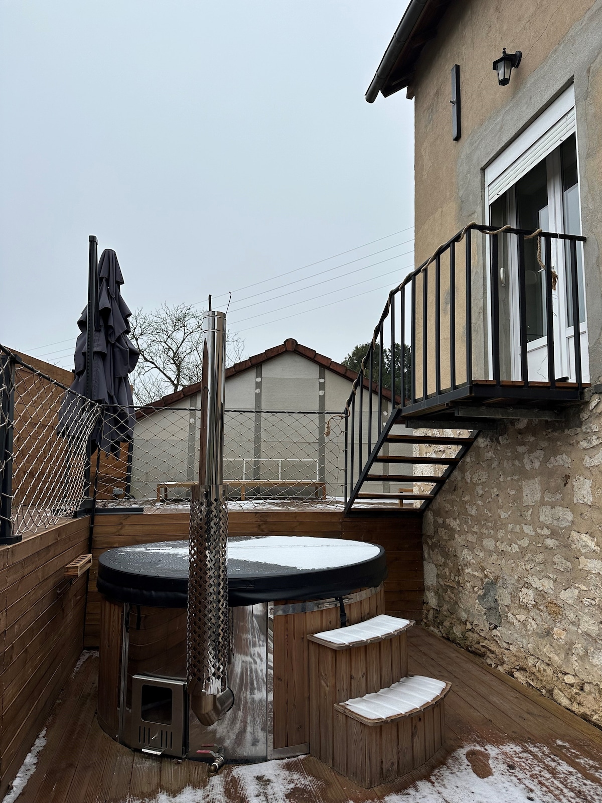 Contemporary architect's house built entirely of natural materials. The facade is made of marble and the structure and insulation are made of wood. The generous volumes of this compact house with large bay windows immerse you in an immersive experience in nature and the path of natural light. This eco-friendly and comfortable house will welcome you by the fireplace in winter or on its terrace and refreshing pool for beautiful stays in the countryside.