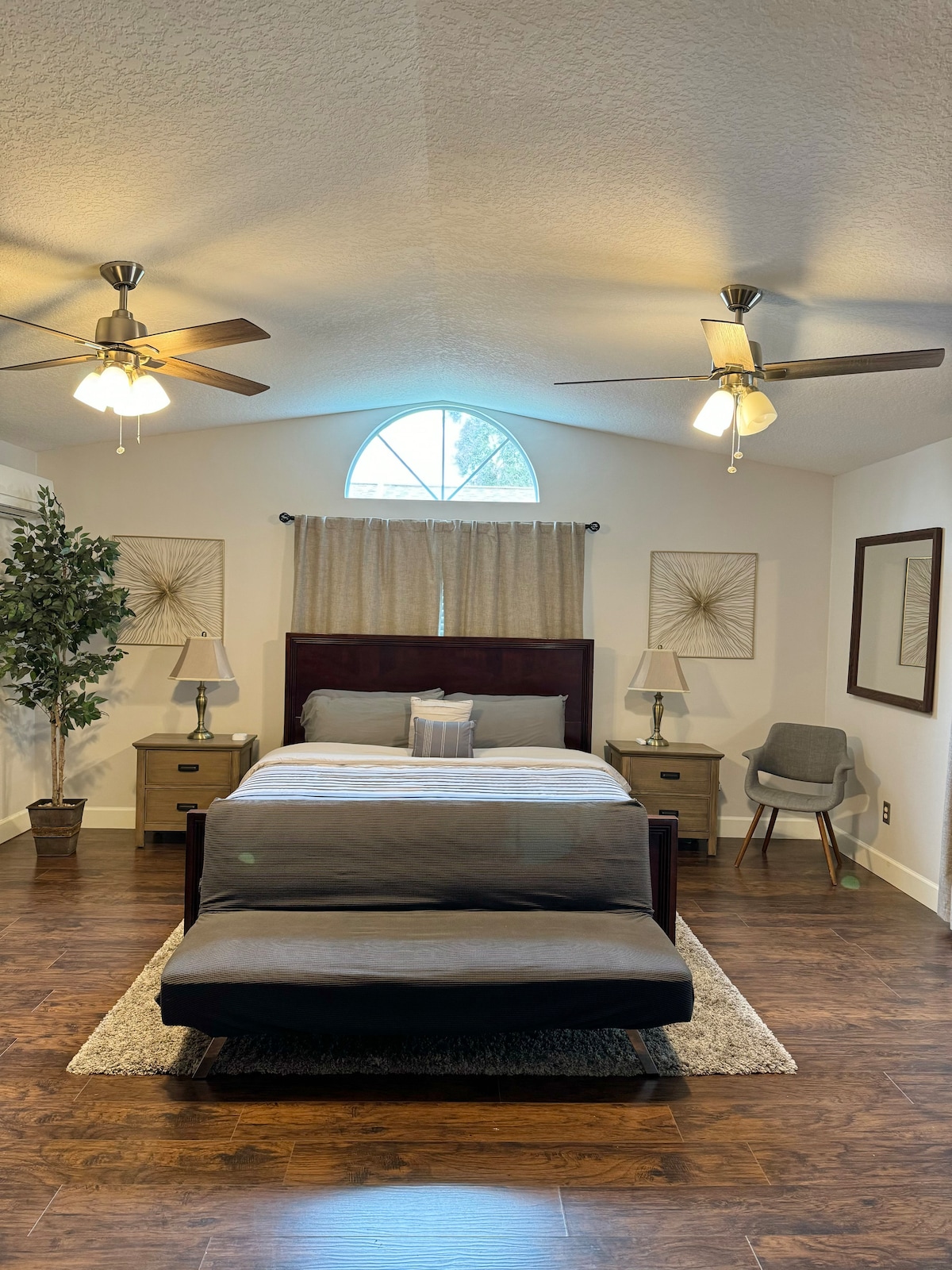 Private & Comfortable 1 bd/ba suite in a 2021 townhome with front view windows, queen size bed, walk-in shower& private entrance. Equipped w/ ceiling and portable fans, Roku smart TV, mini fridge/freezer, microwave, and Keurig. Located in a safe, quiet, walkable neighborhood. 5 minutes of College Park shops, 10 minutes from downtown Orlando, 25 minutes to Universal Studios, 30 minutes to Orlando International Airport, & 40 minutes to Disney.