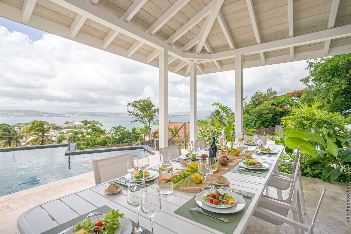Relax at VILLA ANCINEL, quiet and elegant spacious 4 stars accommodation. Enjoy the breathtaking view of the Diamond Rock, in a green setting. Use the private spa and swimming pool at any time of the day and night. The villa is located in a quiet and welcoming residential area.