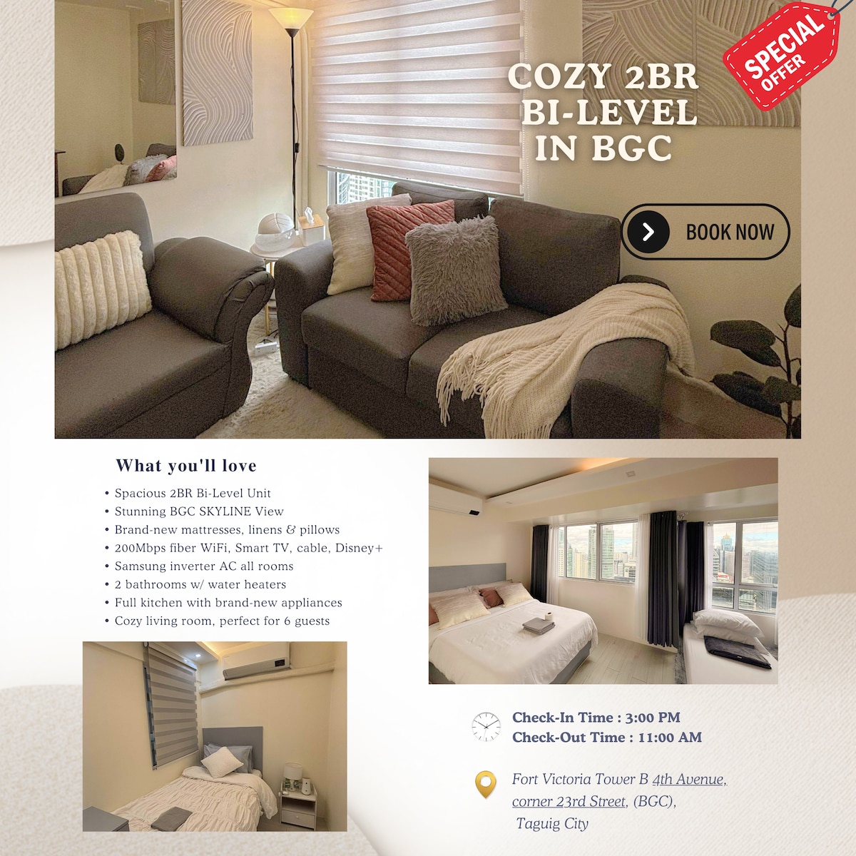 Cozy 2BR Bi-Level in BGC | City View + WiFi