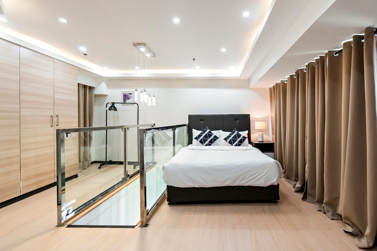 This apartment has a sleek and modern design. It offers calm and relaxation at the heart of the city. A loft-type that is spacious and very quiet. No sounds of busy streets are heard as it is located on a top floor. Rooms have pleated roller blinds that adjusts from minimal lighting to black-out if you want a well rested sleep. It is designed for travelers looking for a clean and peaceful place near the Central Square of BGC.