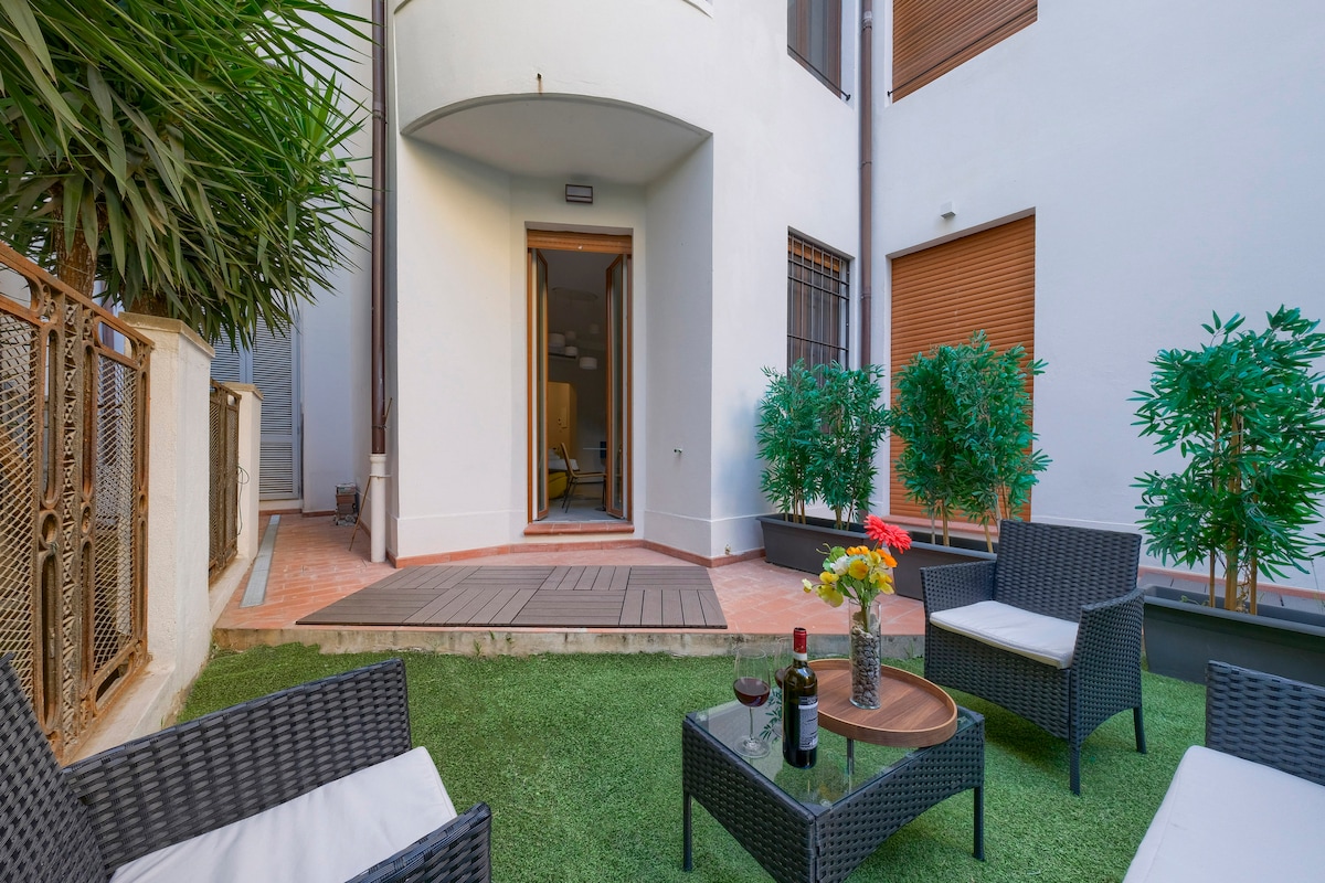 Welcome to Florence’s historic centre. Arriving is effortless—just an 18-min walk or 12-min tram from SMN Train Station. From here, exploring is a breeze. Step outside, and the Duomo is just 12 minutes away, with Ponte Vecchio, Michelangelo’s David, and more all nearby. Nestled in a historic building and newly renovated for modern comfort, this apartment features a stylish, contemporary design complete with its own bar, while the outdoor patio provides an escape from the bustle of the city