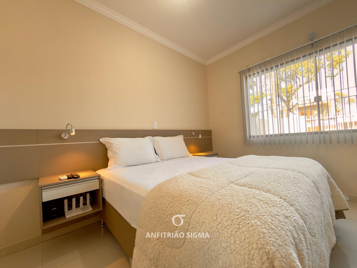 Na parte superior da casa encontrasse os quartos, sendo uma suite + 2 quartos e banheiro. Todos os cômodos com ar condicionado e sacada. Na parte de baixo fica a garagem que abriga 2 carros + sala de tv com internet e lavabo. Cozinha com utensilios domésticos, geladeira, microondas, fogão, forno elétrico. Área gourmet com ar condicionado + churrasqueiras com espetos + utensilios. Parte externa com SPA Jacuzzi, banheiro completo.