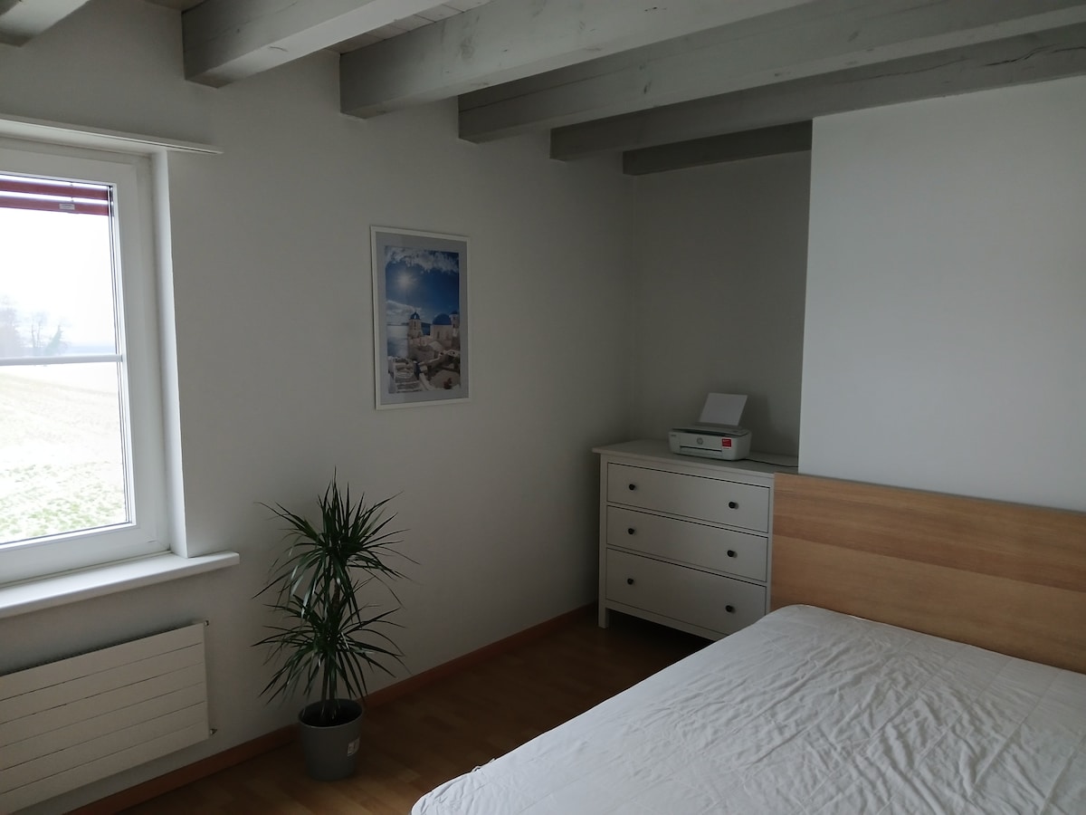 The apartment is located in Steckborn, near the lake of Constance. You will love this apartment because it´s very bright with much space and has a beautiful facility. The apartment is well suited for couples, singles, families, business travelers and small groups. There are 3 rooms. 86m2 space. The living room has a double sofa-bed (140cm). 1 bedroom with a double bed and 1 bedroom with 2 separate beds. A kitchen with an oven and a dishwasher. bathroom+shower. Garden+lies. Free Wlan. Parking.