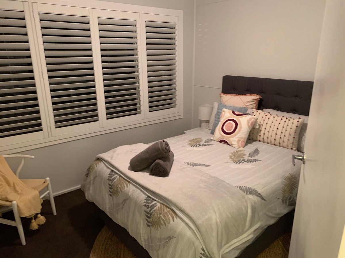 Keep it simple at this peaceful and centrally located suite in Corinella. Book 1 or 3 of these queen or king size rooms. This beautiful suite is perfect for a few nights away or lengthy business trips. Large room, peaceful, quaint option for traveling singles or couples, beautiful views of the bay and Corinella Jetty. BBQ Facilities, own access. Walk to all amenities including the famed "Fig and Bay" Restaurant. Shared use of the deck area, outdoor dining and BBQ facilities.