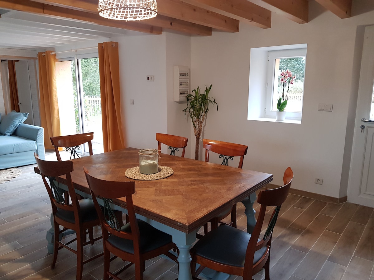 Townhouse ideally located 4 km from the center of Chartres. Quiet neighborhood, nearby shops (bakeries, pharmacy, tobacco shop, and Carrefour Express accessible in less than 5 minutes' walk.) The 94 m² house has all the comforts for 6 people. It consists of a living room, dining room, fully equipped open kitchen, 3 bedrooms, bathroom with toilet, shower room with toilet, laundry room, 25 m² indoor terrace and garden.