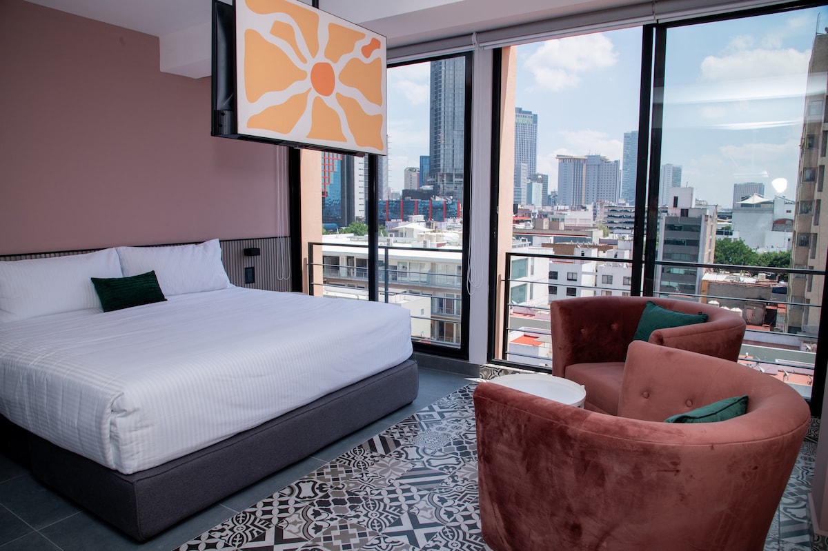 Wake up to the best views of Mexico City. At NIU Reforma, your home in the heart of the capital, our City View Loft with a King bed blends comfort, modern design, and unbeatable location. Enjoy a daily continental breakfast on our rooftop with skyline views. Just steps from Paseo de la Reforma, and close to landmarks like the Angel of Independence, Historic Center, Polanco, and Zona Rosa.