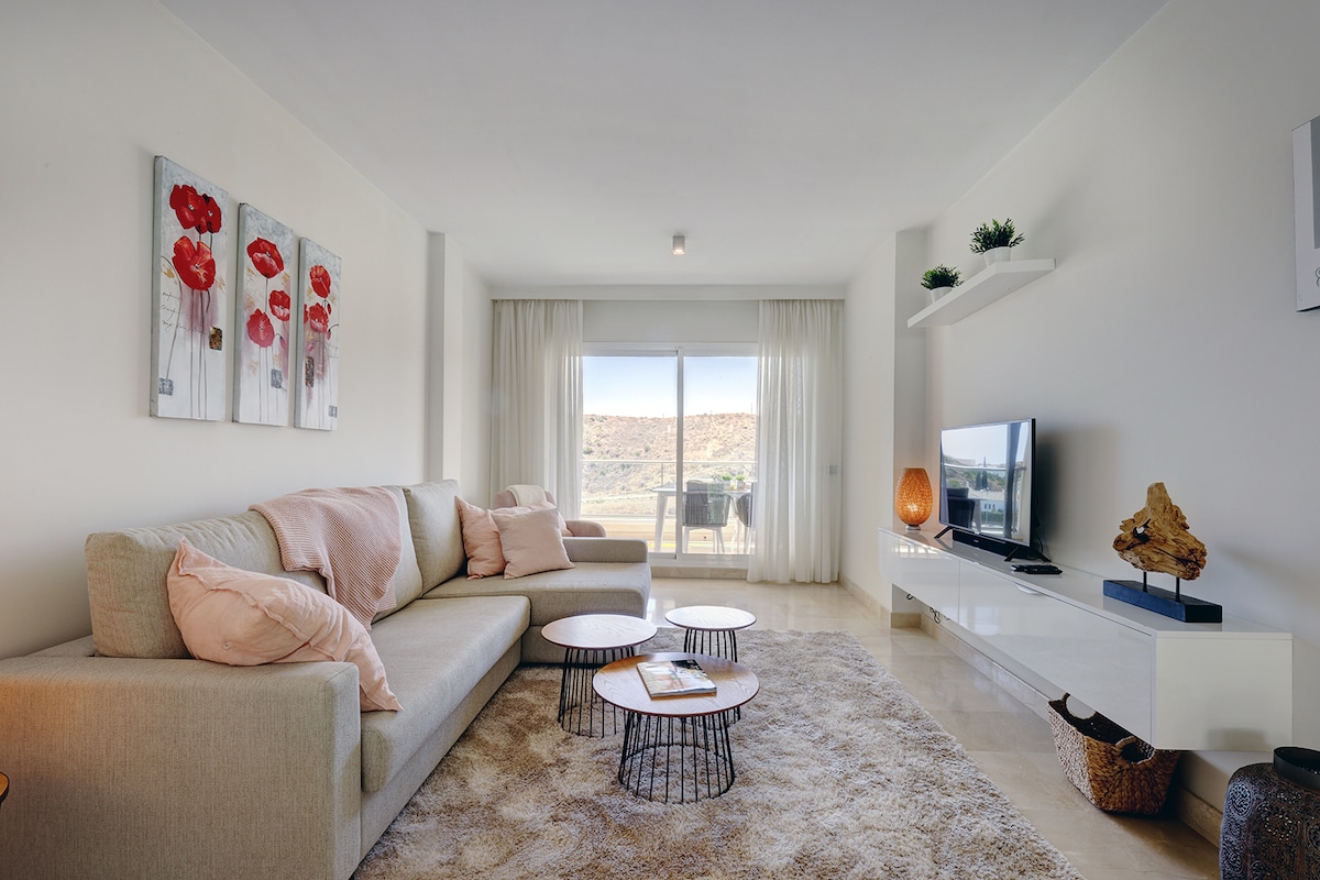 Chill out and disconnect in this peaceful and smart flat. Lovely two bed two bad south facing apartment with a large and sunny terrace with open views to the Hills, golf course and sea at Cerrado del águila Golf resort-Mijas Costa.The apartment has been tastefully decorated for the confort of our guests inside and outside. At the center of Costa del Sol, only five min. by car to La Cala de Mijas and Fuengirola.Marbella and the airport are only 20min away. Swimming pool and parking are available.
