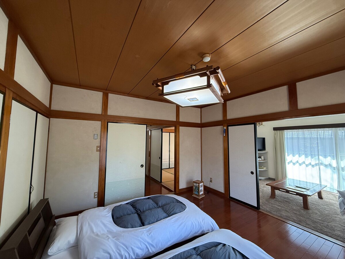 If you want to fully enjoy the rich nature of Nasu, rent a private villa. Surrounded by the forest in each of the four seasons, you can forget your daily routine and relax with your family and friends. There is a covered BBQ room next to the house, so you can fully enjoy the outdoors without worrying about the weather. Karaoke is also available in the room.If everyone sings and has fun, the memories of the trip will be even more vivid. In addition to the indoor bath, you can use the private natural hot spring bath of the next door pension across the street. There are three types: open-air, cypress, and jet, and you can enjoy a relaxing time while overlooking the magnificent nature of Nasu, especially in the open-air bath. * 500 yen per person for bathing. It can accommodate up to 12 people, making it perfect for family vacations, gatherings of friends, and workations. We also welcome guests who bring their dogs and cats.It has a dog run space and a dedicated indoor pet room, so you can rest easy with your important pets. Enjoy a special time with nature, hot springs, and your loved ones and pets in a private space surrounded by the clear air of the Nasu Highlands.