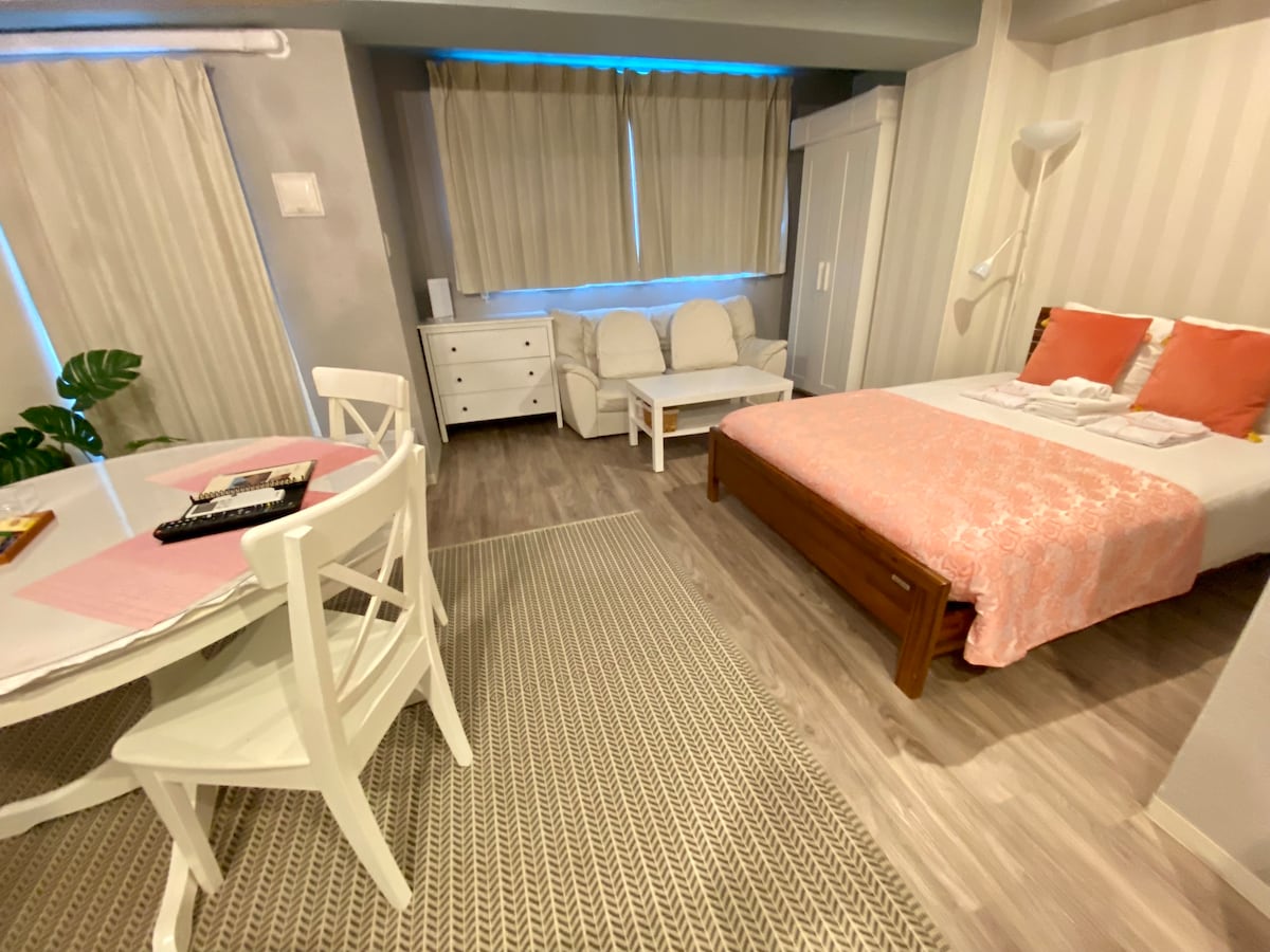 Welcome to Serene Moon W bed (140 cm) × 1 W sofa bed (140 cm) × 1 Max 4 guests Room 403 OPEN February 2024! In the heart of Osaka! It is a 10-minute walk to Umeda, or one stop by train! Namba "Dotonboribashi" 12 minutes by train Minamimorimachi →Nihonbashi→ Namba USJ 20 minutes by train Minami-Morimachi →Osaka Station→ Nishi-Kujo→ Universal City Station Kyoto: 45 minutes by train Minami-Morimachi →East Umeda→ Walking Distance Osaka Station→ Kyoto It is in the heart of Osaka, but the streets are calm. It is a convenient place. KOHYO supermarket is a 4-minute walk, and a convenience store is a 2-minute walk! Tenjinbashisuji Shopping Street, the longest shopping street in Japan, is 2 minutes away! There are restaurants and cafes from various countries, so you can enjoy eating and shopping. See the restaurant guide in the room Osaka Tenmangu Shrine, a 10-minute walk away, is a famous place where the Tenjin Festival, one of Osaka's three major festivals, is held. Host speaks English, Korean, and Japanese. We will store your luggage before check-in and after check-out. The room has a takoyaki maker, unlimited Youtube, and Jcom movies for you to enjoy. We look forward to your visit.