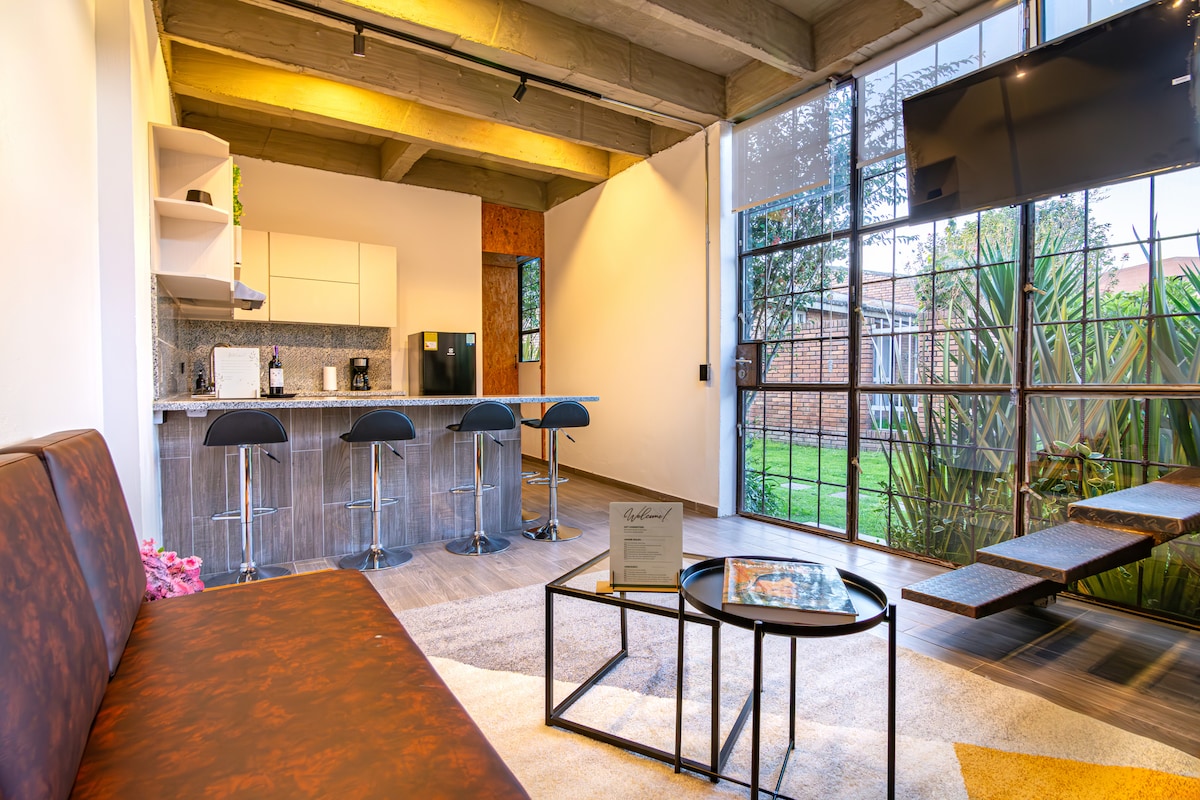Relax in this modern and comfortable loft located in the charming Usaquén, one of the most vibrant areas of Bogotá. Within a few minutes walk, you will find a variety of gourmet restaurants, cafes, and unique boutiques. The room features a queen bed, private bathroom, Wi-Fi, and a workspace ideal for business travelers. Perfect for couples or solo travelers who want to explore authentic Bogotá life in a safe and sophisticated environment. Uroom is exquisite in the details!