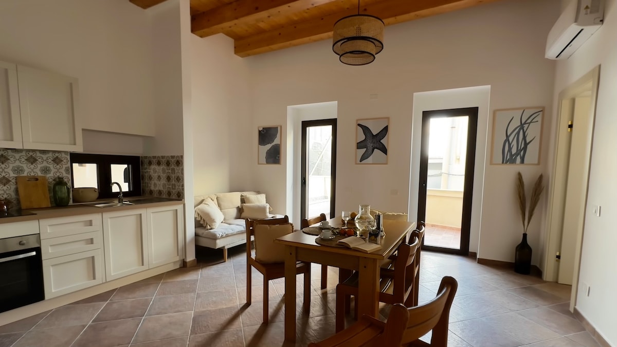 Appartamento di 70 mq interni e 20 mq di terrazza panoramica vista mare, lussuosamente arredato e arricchito di preziose opere d'arte. I quadri d'autore e le manifatture locali come teste di moro e maioliche vi accoglieranno nel cuore della tradizione siciliana,ogni stanza è climatizzata e curata in ogni dettaglio, con SMART TV 75' QLED posta nella sala principale in una splendida cornice con vista mozzafiato. Garage su richiesta, da confermare al momento della prenotazione (€ 15,00 per giorno).