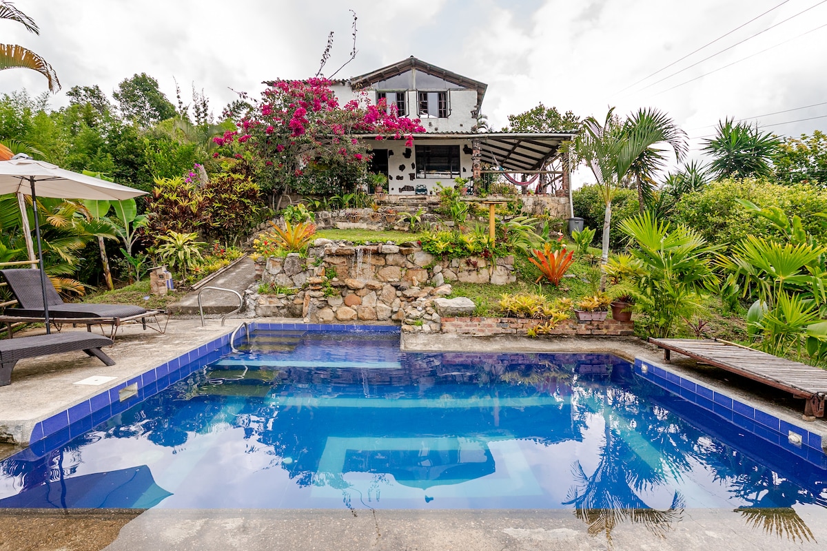 Disconnecting, rest, breathe. The Miramar estate was originally a coffee maker. The house is surrounded by nature, at some times of the day the birds approach the pool and fruit trees. Nearby is Cerro Quinini, a protective forest reserve, where you can hike, birdwatching, bike tours and many other activities. You will enjoy tranquility and silence, perfect for a short escape from the city or a restful break.