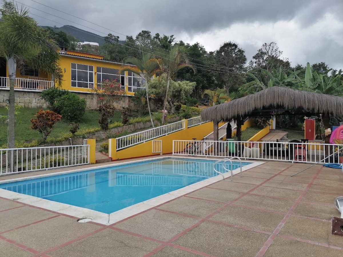 The house is large, comfortable and with all the services, for an excellent rest, in the best area of the municipality of Tibacuy, the hidden jewel of Cundinamarca, 35 minutes from Silvania, you arrive in Tibacuy, and in 3 minutes you are already on the property, it has a pool, sauna, gym area, pool table, playground, BBQ area, and best of all the tranquility of being in the countryside, the whole house is for visitors. See how happy, you only pay 1 toll, and with sports and ecotourism.