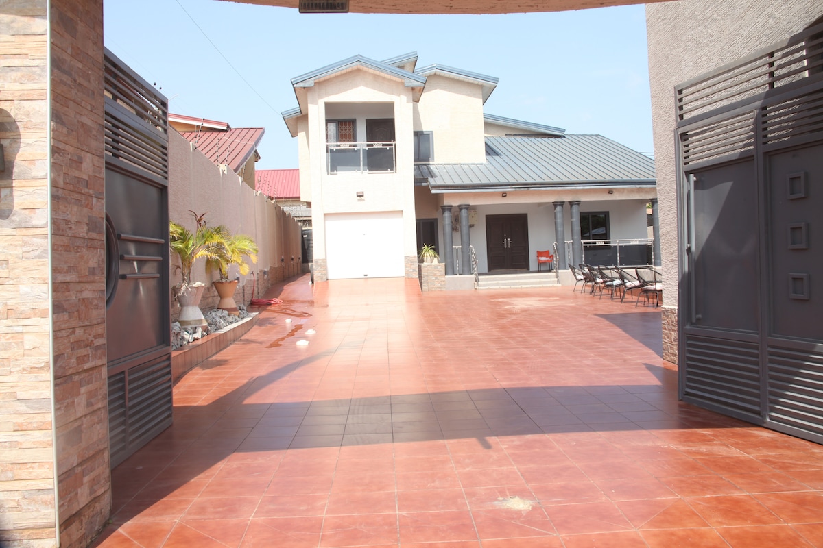 Welcome to Open Heavens Agyeiwaa, a plush two-storey four bedroom house with 4.5 baths. This home is large and accommodating to guests for entertaining with 2 living areas each fully air-conditioned with television sets connected to digital satellite network and exquisite crystal chandeliers. It has Master suite located on the first floor, a unique kitchen and a spectacular dining area. You will definitely enjoy a perfect setting for relaxing and entertaining.