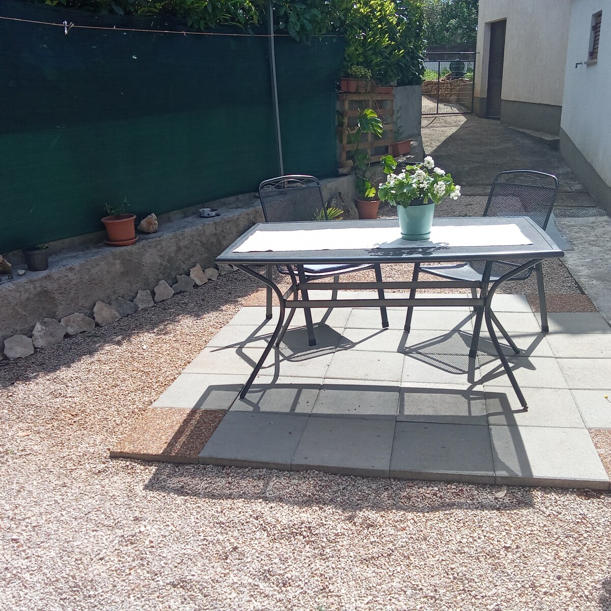 Apartment (35m2) is located on the first floor of a family house in a quiet location surrounded with big Mediterranean garden. The local beach is easily accessible on foot (10 min.walk)Within walking distance are several restaurants, promenade and little supermarket. A highlight is a terrace where you can enjoy view in greenery, see, sunset and chill after beach, sun with a glace of wine.