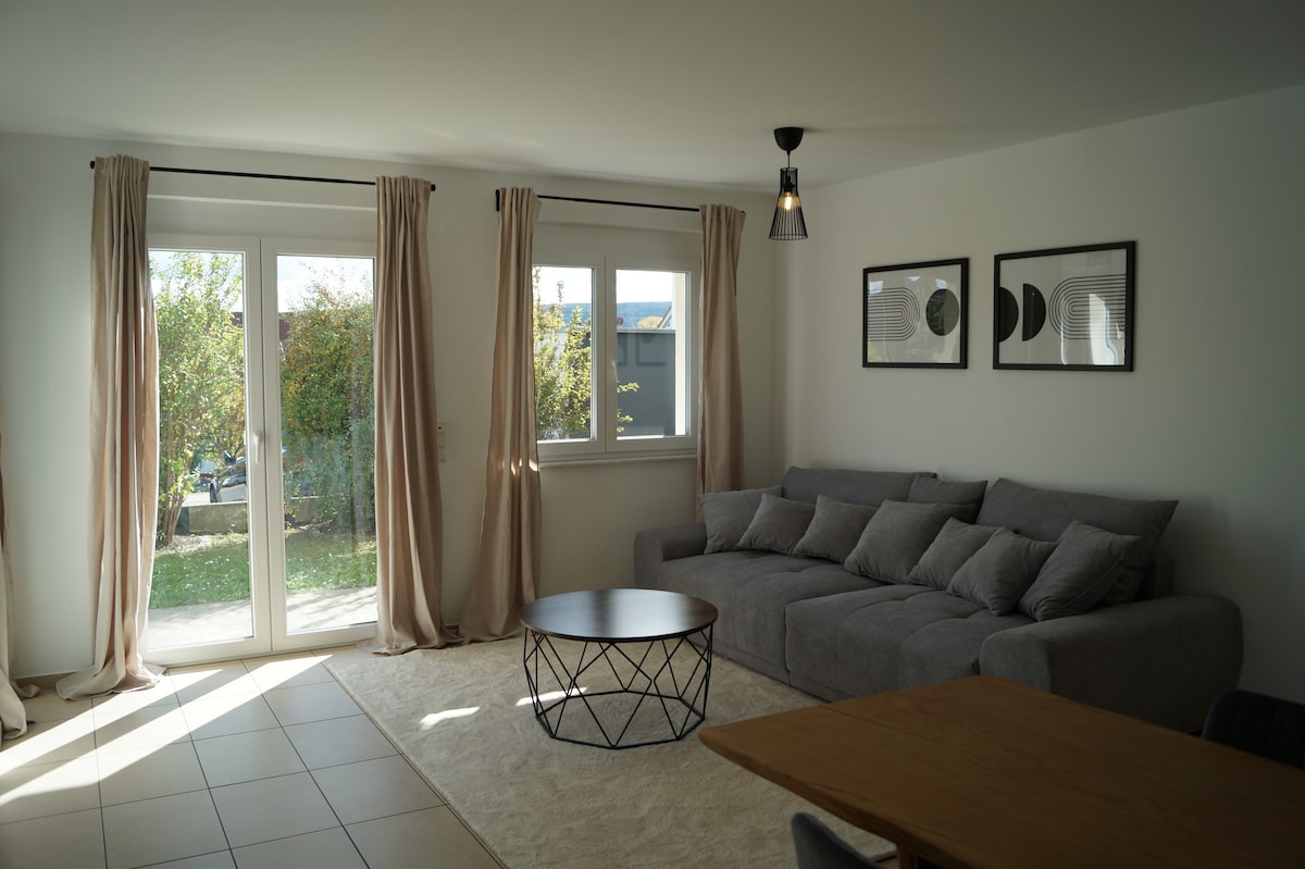 Welcome to our newly renovated, modern 1-room apartment! Enjoy a comfortable home with all the amenities. Ideally located for recreation and exploration, our apartment offers everything you need for an unforgettable stay. Perfect for couples and solo travelers. University at Hubland about 5 min. walking distance. Downtown Würzburg is about 12 minutes away without changing bus. The stop is outside the house.