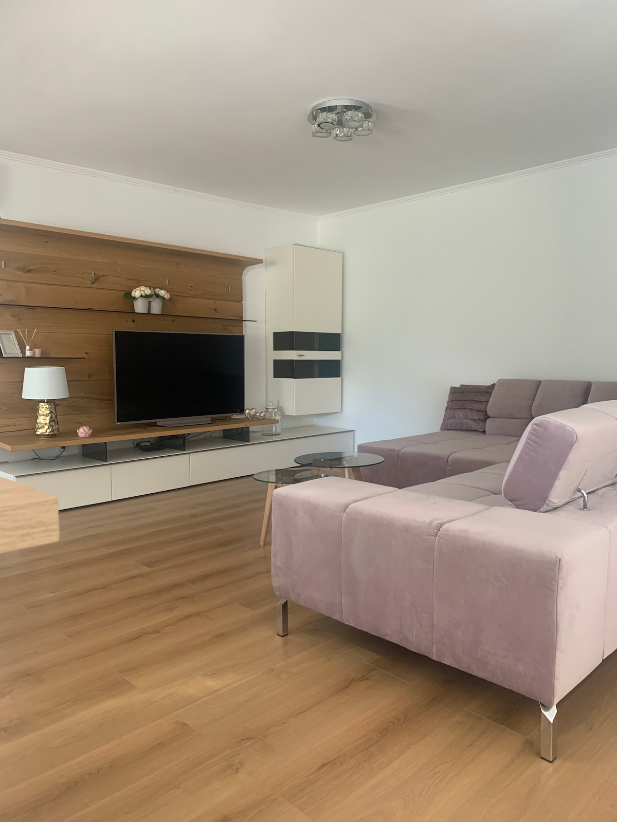 We are presenting our new house where you can find accommodation in some of our 4 newly built apartments. All apartments have balconies with great sea view or garden view. This "Pink apartment" is on first floor and it consists of a fully equipped kitchen, dining room, living room, 2 bedrooms and 2 bathrooms. We hope we'll have the opportunity to have you as our guests and to be your hosts.