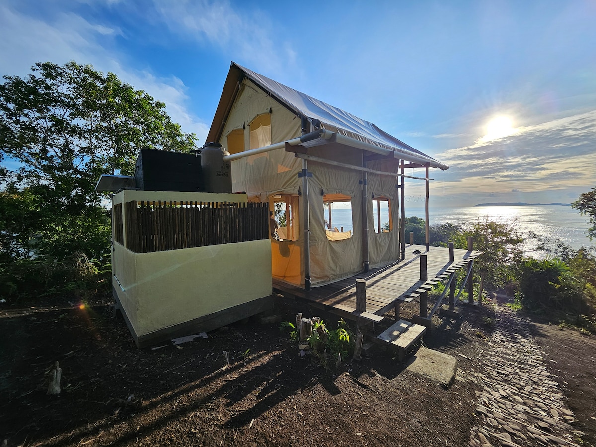 Tent 6 Nora. Disconnect and reconnect with your love ones on your very own little Island just 2.5 hours from Singapore! Experience castaway living with basic comforts. We strive to be a Zero Carbon, Zero Waste but 100% resort. We use only solar energy, harvest rainwater and use locally available, ocean to table ingredients so you can enjoy a guilt free holiday. pls read on for access instructions. NOTE - This tent is part of a twin family unit. No attached toilet, It shares toilet with Tent 7