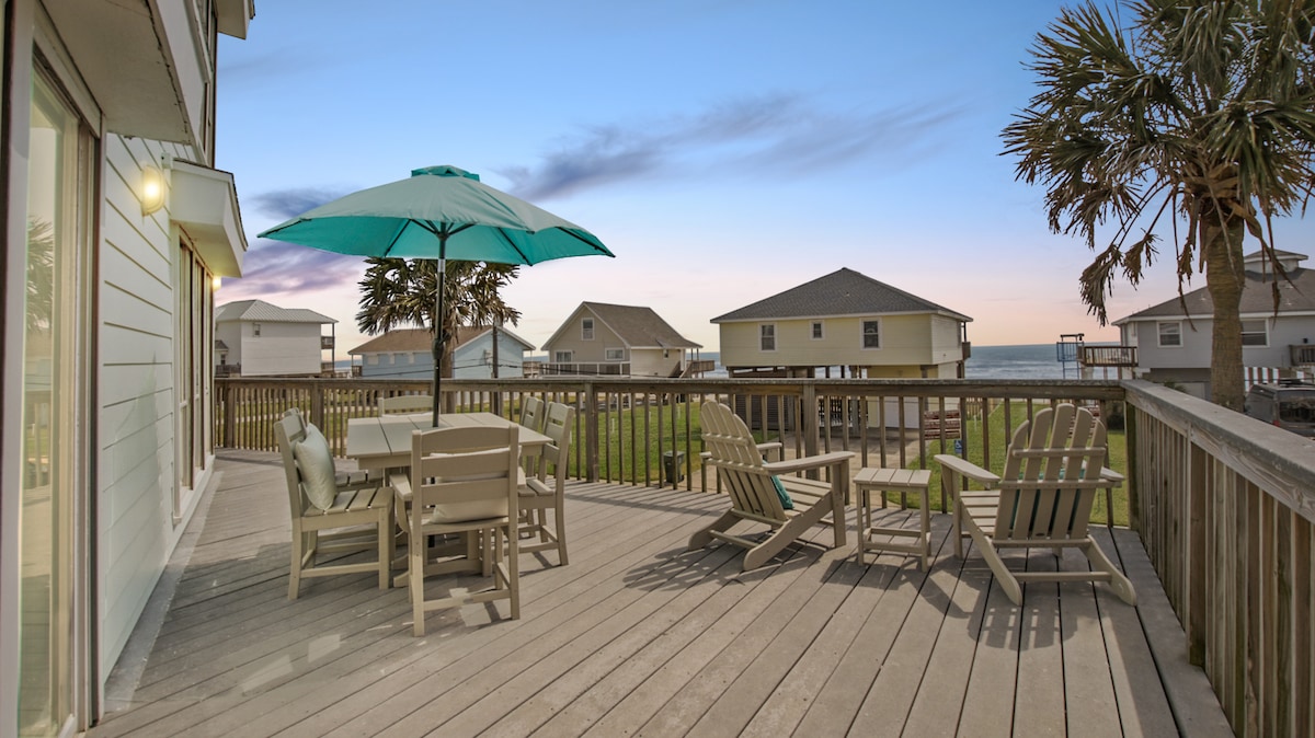 Welcome to Seas The Moment! Relax with the family and friends in this beautiful 4 bedroom/4.5 bath beachfront retreat. Gorgeous views from every room! Brand new Tiki bar! Open concept living spaces. All bedrooms have incredible ocean views and en suite baths. Upper deck is directly accessible from all upstairs bedrooms. Rare true elevator with access to all floors. Beach access is steps from the home. We are the closest beachfront house to the Big Store, where you can find anything you need!