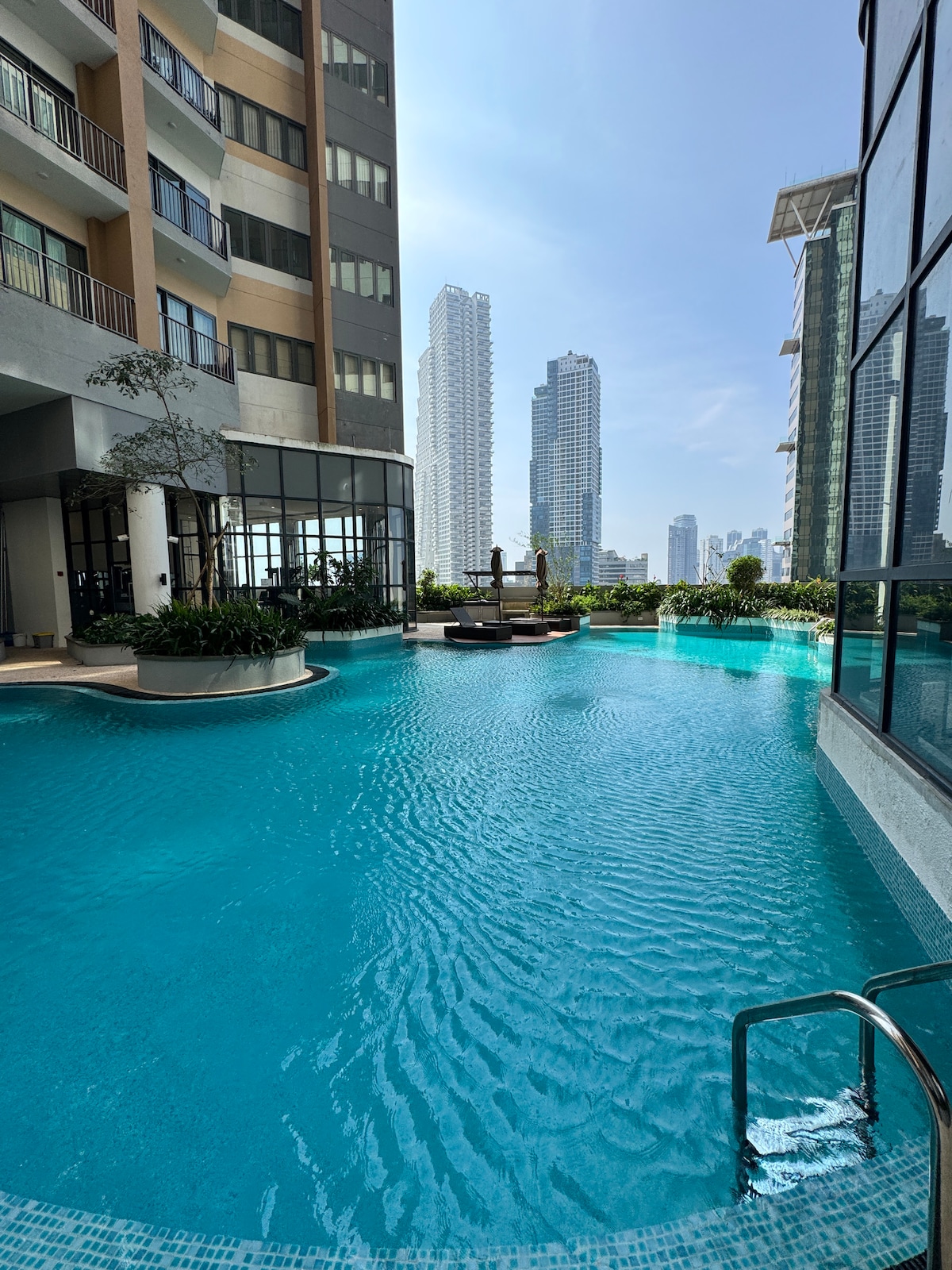 Brand new luxury apartment on the 28th floor of Luna Tower. Centrally located with supermarket/department store across the road. Views of the ocean & Viharamahadevi Park. High ceilings, teak floors, double glazing to block heat & noise, & built in European appliances. Modern, new furniture, fully equipped kitchen, thermal curtains, etc. Common facilities: roof top infinity pool, kid’s pool, gym, meeting rooms, function rooms, 24/7 CCTV & security personnel. Search Luna Tower for details.