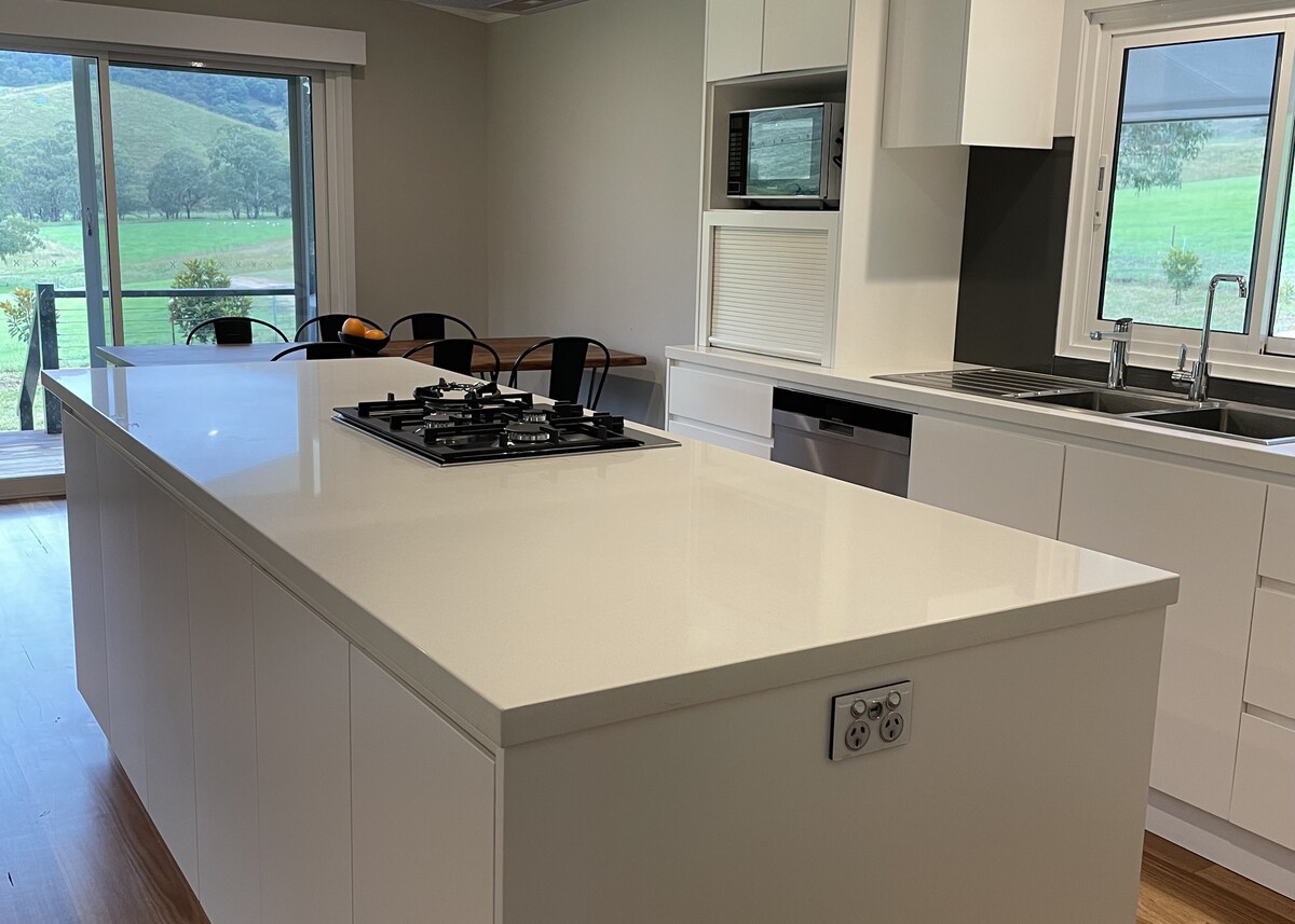 Experience beauty, calm and peace in this beautifully styled, luxurious cottage for two adults. Unwind in front of the crackling wood fire with a glass of wine or a hot cuppa. Relax in the soaker bath and fall asleep at night in the luxurious King sized bed with its snowy white linen. Wake up to spectacular mountain and valley views while you enjoy your breakfast looking out the huge picture windows. Say hello to the resident wildlife including kangaroos and wood ducks and just 'be'.
