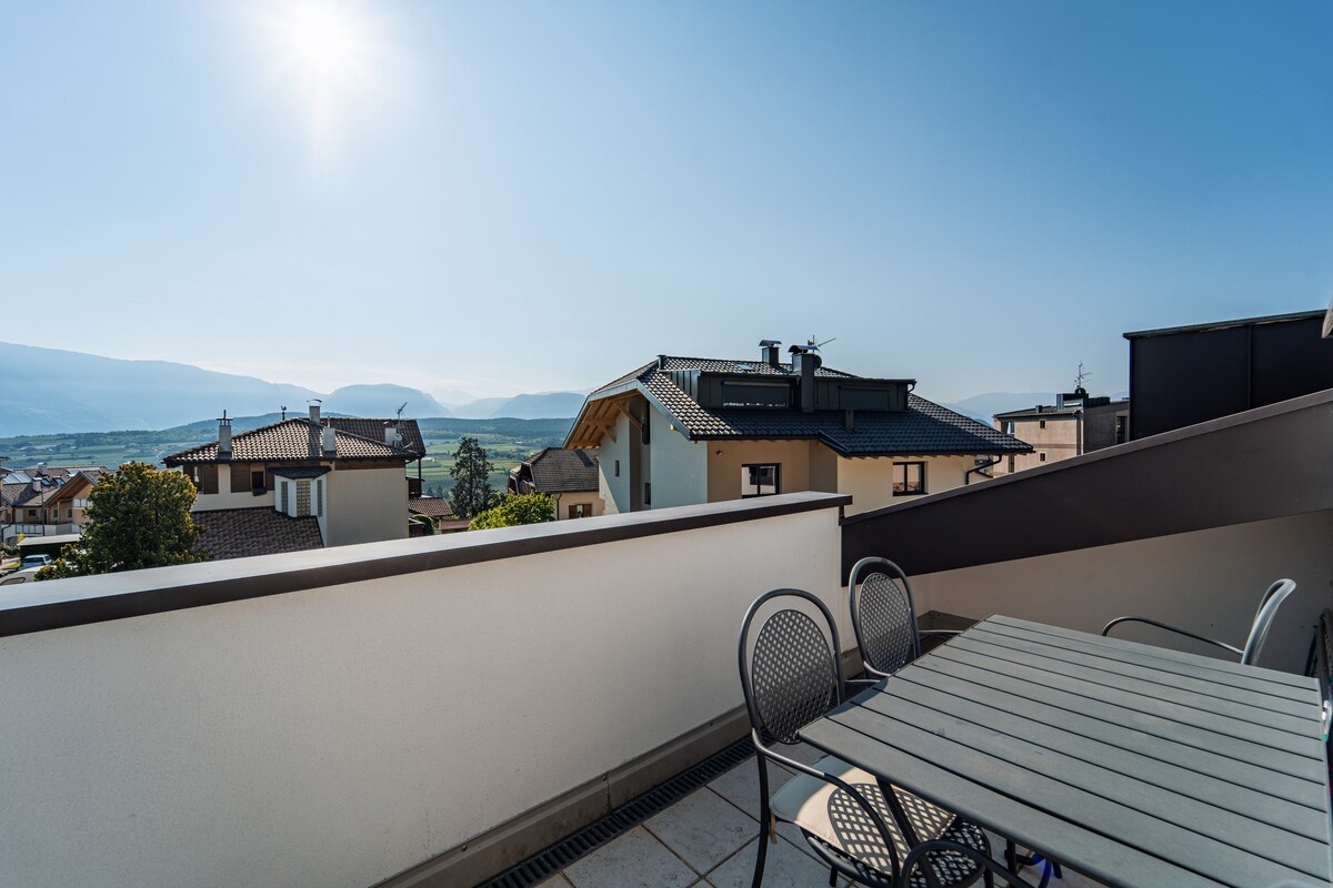 Enjoy a special time in a stylish and high-quality newly built apartment. Terrace with a great view of the Rosengarten. Spacious free garage offers space for car and bikes. The old town is easily accessible by foot. The Bolzano Card is included: public transport in Bolzano and South Tyrol and many cable cars and museums are free to use! The tourist tax is included in the apartment rate