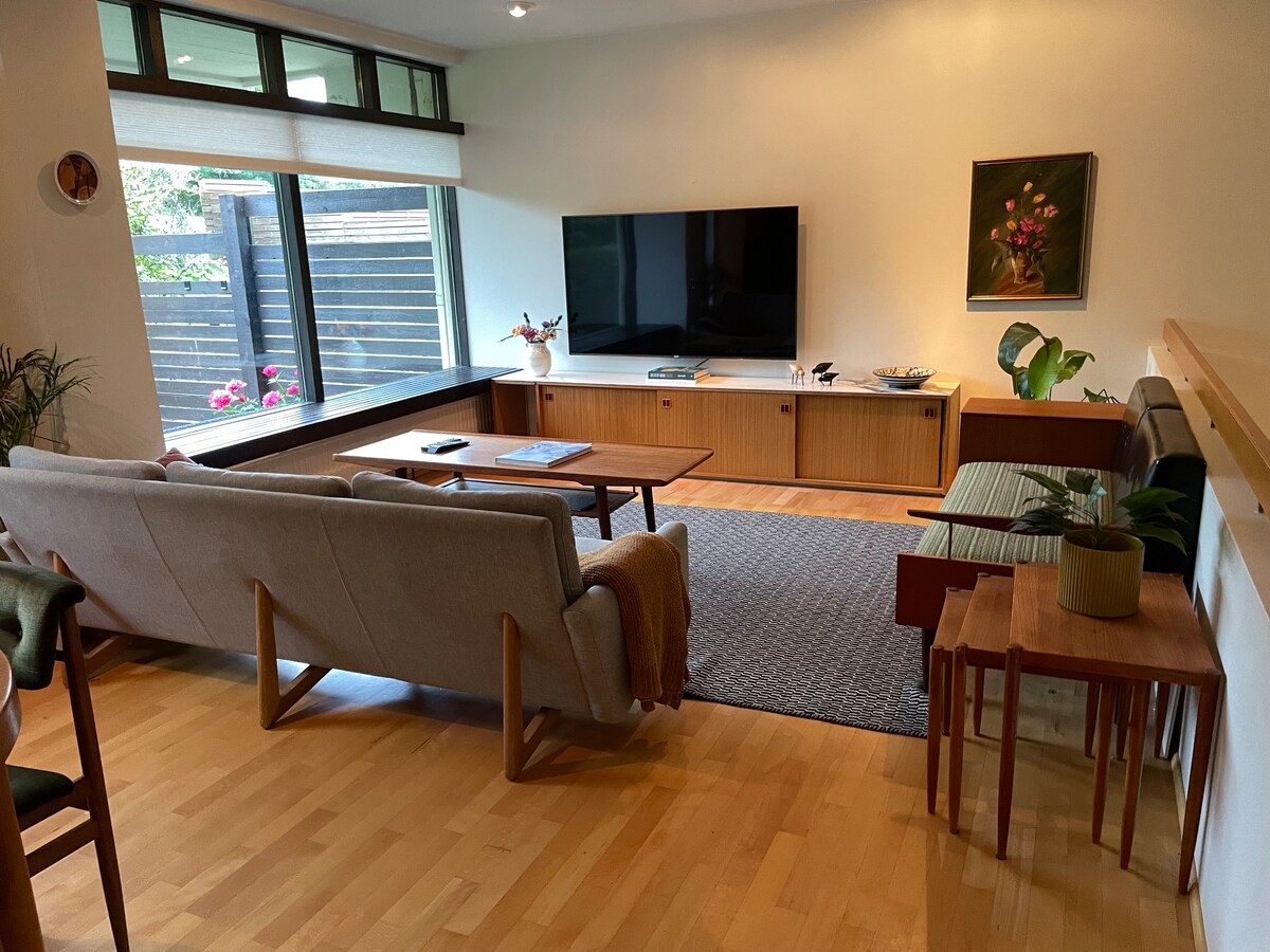 Welcome to our Scandinavian minimalist home located in a quiet family-friendly neighborhood. Unwind in the hot tub under the starlit sky, or gather around the sleek fireplace for cherished family moments. With its clean lines and serene ambiance, our home offers the perfect balance of comfort and style for your getaway