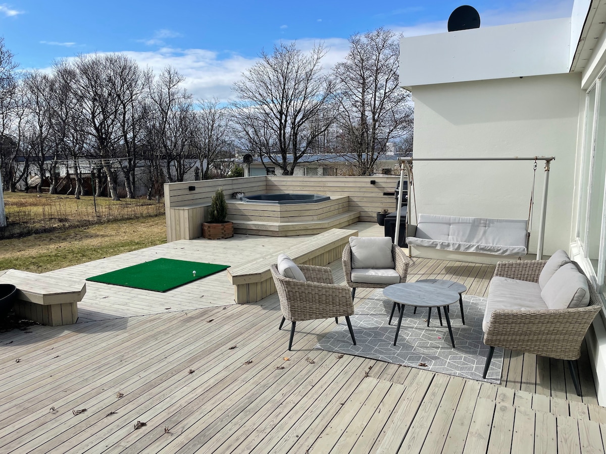 Welcome to our spacious Reykjavik house! Enjoy the best of both worlds with our serene neighborhood setting just minutes from the city center. Perfect location in Reykjavik for a large family or a group of friends to stay. Relax on our private patio featuring a hot tub, cold tub, and trampoline. Plus, a grocery store is just a two-minute walk away for added convenience. Discover the beauty of Reykjavik with a short 10-15 minute drive to the city center's attractions and nightlife.