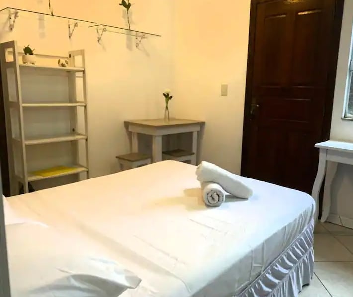 Comfortable ✨ Suite for up to 3 people ✨ Enjoy a spacious, airy and quiet en-suite, ideal for rest and tranquility. Queen 🛏 Bed + Twin Bed 🌅 Balcony with hammock and sunset view Private 🚿 bath 📺 TV Full 🍽 Kitchen with panoramic view of Ibiraquera lagoons (shared) 🌊 2 km from Praia do Rosa 🚶♂️ 700 meters from the center of Ibiraquera 2-2.5 km from the Lagoons. Perfect for relaxing and enjoying nature! 🌿