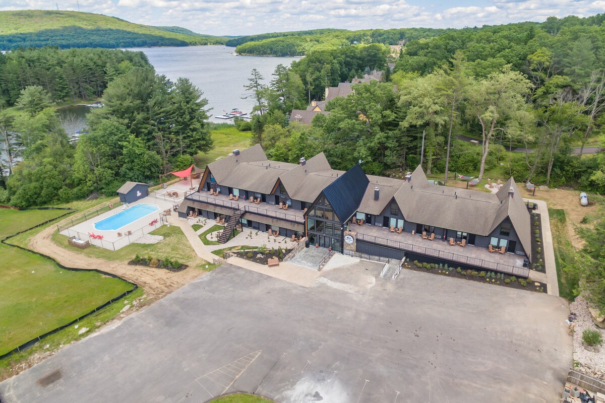 Recharge in style in this thoughtfully designed retreat, where a plush King bed, warm electric fireplace, and all the comforts of home come together for the perfect mountain getaway. The luxurious bathroom features a walk-in shower with premium bath products, and the kitchenette gives you the freedom to enjoy meals at your own pace. A Smart TV keeps you entertained whenever you need it. Step outside onto your deck to sip your morning coffee or wind down after a full day of lake adventures.