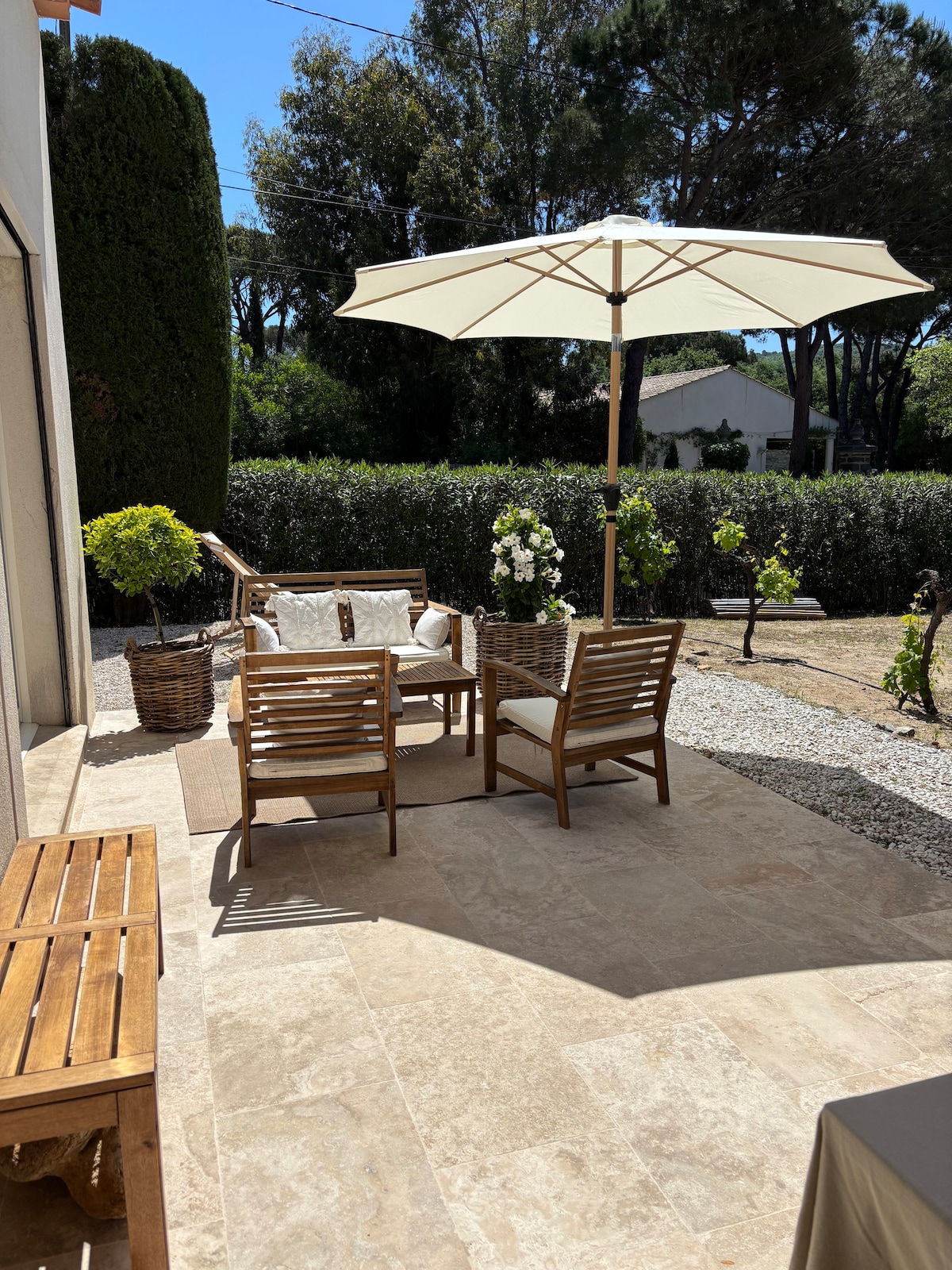 Are you looking for quiet accommodation on the Saint-Tropez peninsula? Our house is the perfect place. It is located 15 minutes from the center of Saint-Tropez and Pampelonne, 10 minutes from the beaches of Gigaro and a stone's throw from Gassin. The house is brand new and is part of a small winery. It has its own garden and shares the pool (4*15 m) with the main house. For golfers, 3 holes and a bunker will allow you to practice your swing.