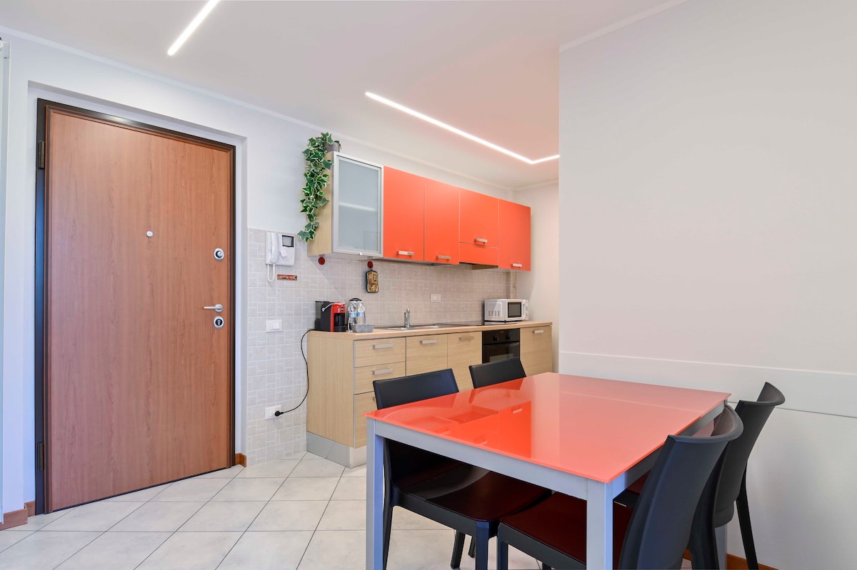 Just 2 km from BGY Airport, Orio Center and Promoberg Fair, and about 3 km from Bergamo. Independent house with garden, free parking and paid charging station. Charming and quiet one-bedroom apartment with living area and kitchenette, king-size bed and bathroom. The apartment offers excellent soundproofing and is fully equipped for a self-sufficient stay. Bus stop 450 m away and illuminated walkway to and from the airport.