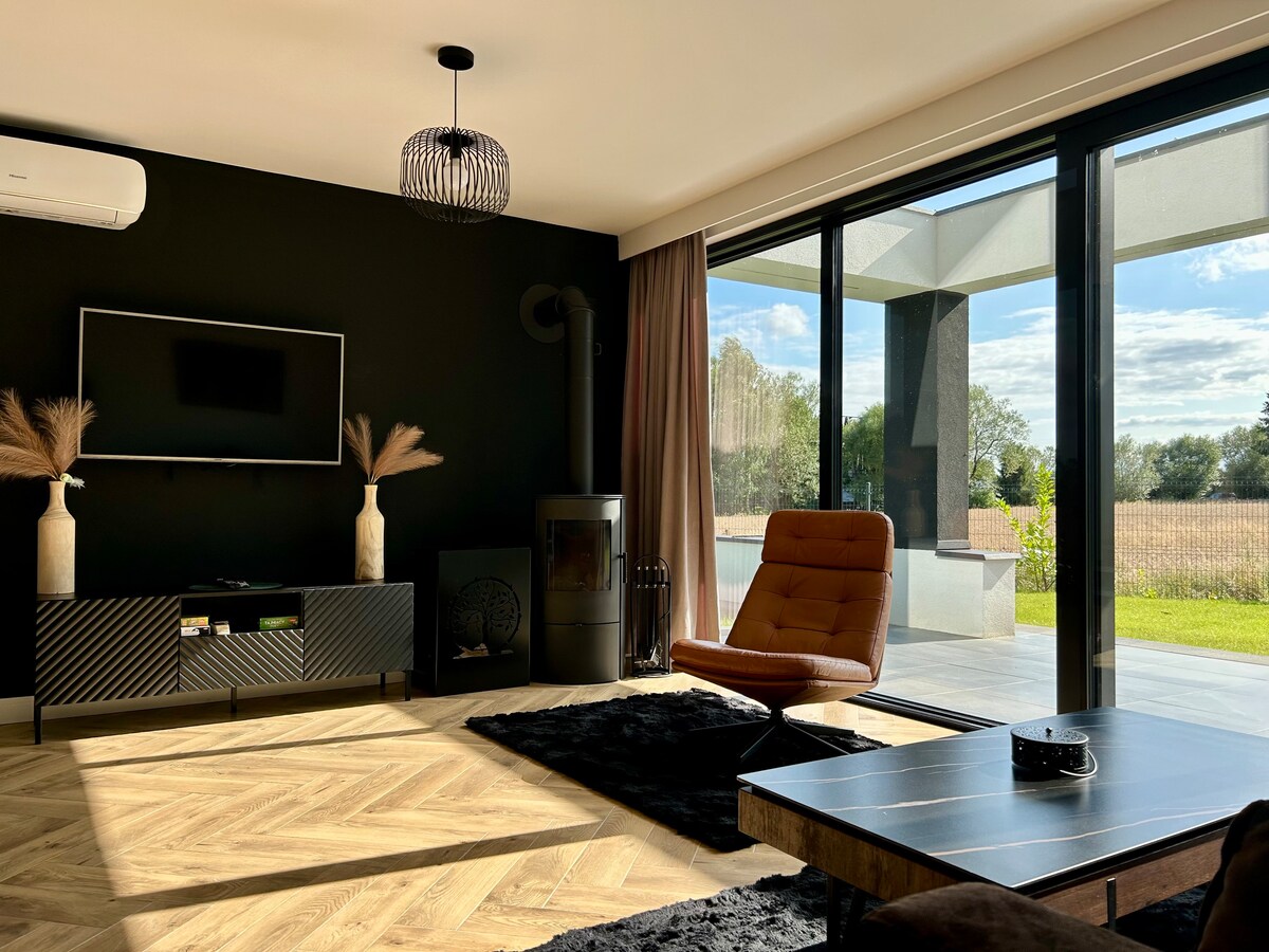 We invite you to a modern cottage in Nowy Wiec, among forests and close to the lake. The cottage in Wiec is an oasis of peace. Relax on the terrace listening to the birds, warm up by the fireplace, or relax in the sauna and hot tub under the stars. Large windows let in light, creating a cozy atmosphere. An equipped kitchen and comfortable beds will ensure comfort. Perfect for a romantic weekend or a family getaway. Book and discover the magic of nature!