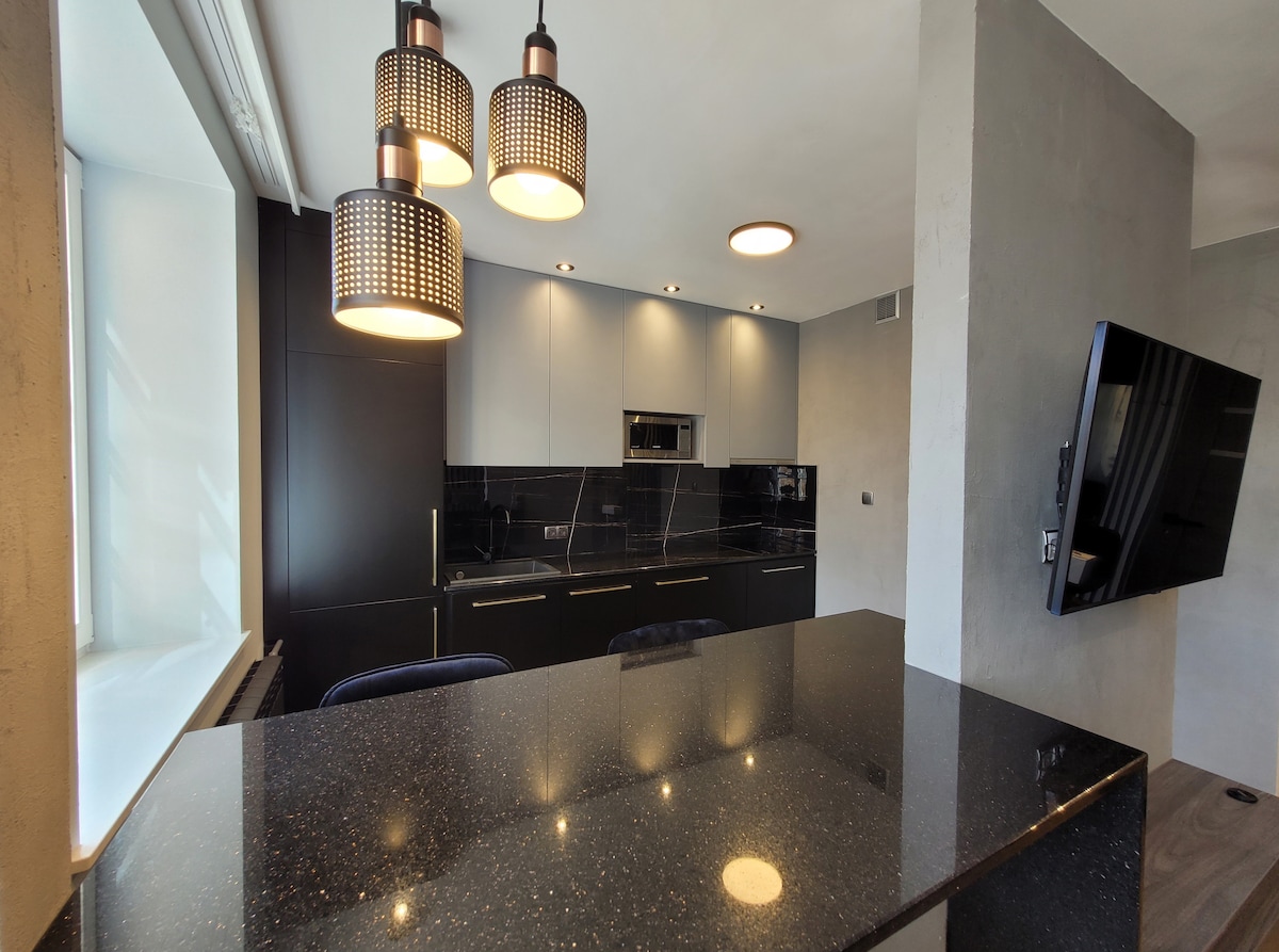 A stylish place to stay in the very center. The apartment consists of a living room with kitchenette, two bedrooms, a wardrobe and a bathroom. The apartment is on the fourth floor, the building has no elevator. A stylish place to stay right in the center. The apartment consists of a living room with a kitchenette, two bedrooms, a wardrobe and a bathroom. The apartment is located on the fourth floor, there is no elevator.