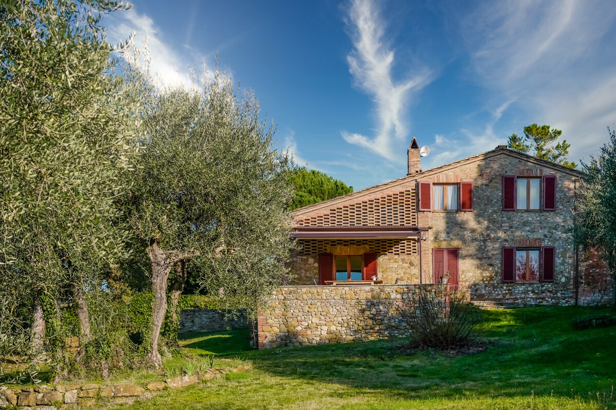 Ancient restored barn with up to 6 bedrooms and 6 bathrooms, immersed in a historic wine estate, just 6 km from Siena. One of the most beautiful views that the Tuscan panorama can offer, airconditioned bedrooms, exclusive swimming pool, large triple garden, BBQ, poolside table, terrace to enjoy the sunset over the medieval towers on the horizon while sipping the organic wines of the estate, fireplace, parking free, WI-FI internet.
