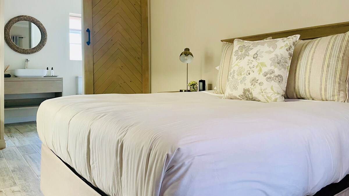 Tucked away in tranquil private garden, this charming hideaway invites you to slow down and unwind. Sink into a queen-size bed dressed in crisp white linen, enjoy the comfort of an en-suite shower, make yourself at home with a cozy kitchenette featuring a microwave, bar fridge, and Nespresso coffee machine. Fast Wi-Fi, peaceful surroundings, and a romantic atmosphere await. A hot tub is available on request at R500 per session, and the sauna at R150 per person — perfect for relaxing together.